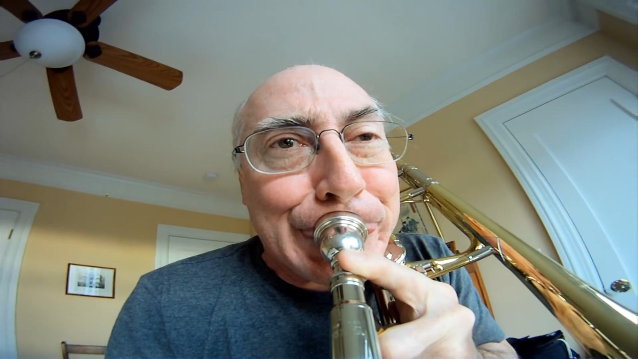 トロンボーンと見るトロンボーンを吹くおじさん