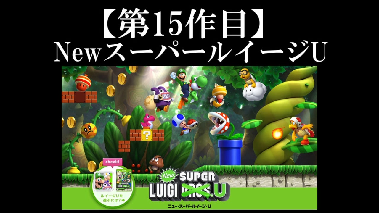 ゲイージ:マラオさんを兄のように慕う一般人。さらわれた(?)マラオさんを助けるために冒険に出かける。一般人なので弱い。<br><br>キチピオ:キノコ王国の先住民。ビッチ姫に洗脳され、下の世話をさせられている。ゲイージ程ではないが戦闘力は低い。フリーザ軍兵士くらい。<br><br>キチピコ:本作初登場。ビッチ姫に憧れている。キチピオ達の中では戦闘力は高め。アプールくらい。<br><br>トッテン:正体不明の生き物。実力も未知数だが、パーティメンバーの中では最強の模様。<br><br>【今回のいいね】 今回の主人公、ゲイージの長所について<br><br>【今回の縛り】 特になし ※これまでのマラオゲームツアーと違い、完全初見です。動画などで観た事もありません。<br><br><span style="font-size: 18px;"><strong>6年半ぶりに元相方、みはさんとの実況動画をニコニコチャンネル限定で公開中!過去実況を毎週水曜日に投稿していきます。<br>是非ご視聴ください→</strong></span><span style="font-size: 18px;"><a href="https://www.nicovideo.jp/watch/1550670123" class="watch">watch/1550670123</a></span><br><span style="font-size: 13px;">ニコニコの有料チャンネル:<a href="https://ch.nicovideo.jp/ultimatenonke" target="_blank" rel="noopener">ch.nicovideo.jp/ultimatenonke</a> </span><br><br>Youtubeでも早期投稿中!:<a href="https://www.youtube.com/channel/UC9HK-1P7Kk91kT6caI-mSmA" target="_blank" rel="noopener nofollow">https://www.youtube.com/channel/UC9HK-1P7Kk91kT6caI-mSmA</a> <br><br>twitter→<a href="https://twitter.com/ultimatenonke" target="_blank" rel="noopener nofollow">https://twitter.com/ultimatenonke</a><br><br>ルイージU part2→<a href="https://www.nicovideo.jp/watch/sm39462062" class="watch">sm39462062</a> (毎週月、木曜日更新予定) <a href="https://www.nicovideo.jp/mylist/71948594" target="_blank" rel="noopener">mylist/71948594</a><br><br><span style="font-size: 13px;"><strong>過去の投稿動画一覧</strong></span>①→<a href="https://www.nicovideo.jp/mylist/28353385" target="_blank" rel="noopener">mylist/28353385</a> ②→<a href="https://www.nicovideo.jp/mylist/28347387" target="_blank" rel="noopener">mylist/28347387</a> <br>メール:ultimatenonke@yahoo.co.jp <br>生放送用コミュニティ:co461109