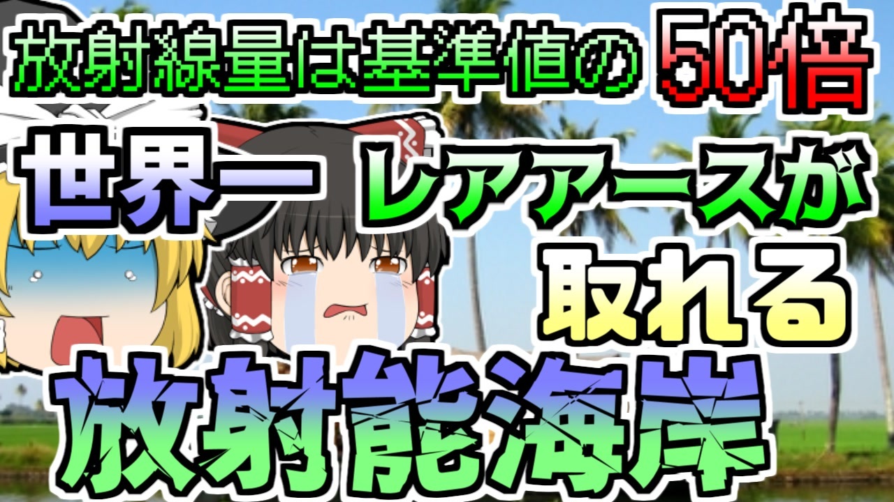 #ゆっくり解説 #ゆっくりするところ #放射線<br>今回紹介するのは、以前からリクエストがありました「インド放射能海岸」です。<br>この海岸では、「モナザイト」と呼ばれる貴重な鉱石、所謂「レアアース」が大量採れました。<br>この場所は、世界一モナザイトが多く埋蔵されている場所で、世界各国が注目していました。<br>しかし、それと同時に、この海岸で照射される自然放射線は、国際基準の約50倍。<br>その放射線は、この貴重な鉱石「モナザイト」から放たれていたものでした。<br><br><br>引用:出展:参考<br>Wikipedia<br>ishort.ink/Qm32<br>ishort.ink/aLCp<br>文部科学省 科学技術<br>学術政策局 <br>研究炉等安全規制検討会 <br>ishort.ink/Z4oL<br>東京大学原子力<br>研究総合センター <br>ishort.ink/HVae<br>文部科学省<br>ishort.ink/epJ8<br>印度港湾事情<br>エネ百科<br>ishort.ink/i9Rc<br />※この動画は過去の事件を知り、現在でも同じことが発生する危険性を再認識、関与しないように促すための動画であり、視聴者を扇動、動揺を誘うためのコンテンツではありません。<br><br>ご要望にお応えして、メンバーシップの開設を行いました。<br>下記URLからも登録可能ですので、ご興味がある方は是非ご参加ください。<br><a href="https://www.youtube.com/channel/UCcT5a1J7XJW7CLYI2RKl4pw/join" target="_blank" rel="noopener nofollow">https://www.youtube.com/channel/UCcT5a1J7XJW7CLYI2RKl4pw/join</a><br><br><br>Twitter<br>→<a href="https://twitter.com/yukkurisurutoko" target="_blank" rel="noopener nofollow">https://twitter.com/yukkurisurutoko</a><br><br>取り急ぎ、簡易的にですがマイリストを作りました。<br>【ゆっくり解説】事故・事件関係紹介リスト <br><a href="https://www.nicovideo.jp/mylist/71034319" target="_blank" rel="noopener nofollow">https://www.nicovideo.jp/mylist/71034319</a><br>【ゆっくり解説】放射線系事故<br><a href="https://www.nicovideo.jp/mylist/71034368" target="_blank" rel="noopener nofollow">https://www.nicovideo.jp/mylist/71034368</a><br>【ゆっくり解説】鉄道系事故・事件関連<br><a href="https://www.nicovideo.jp/mylist/71034379" target="_blank" rel="noopener nofollow">https://www.nicovideo.jp/mylist/71034379</a>