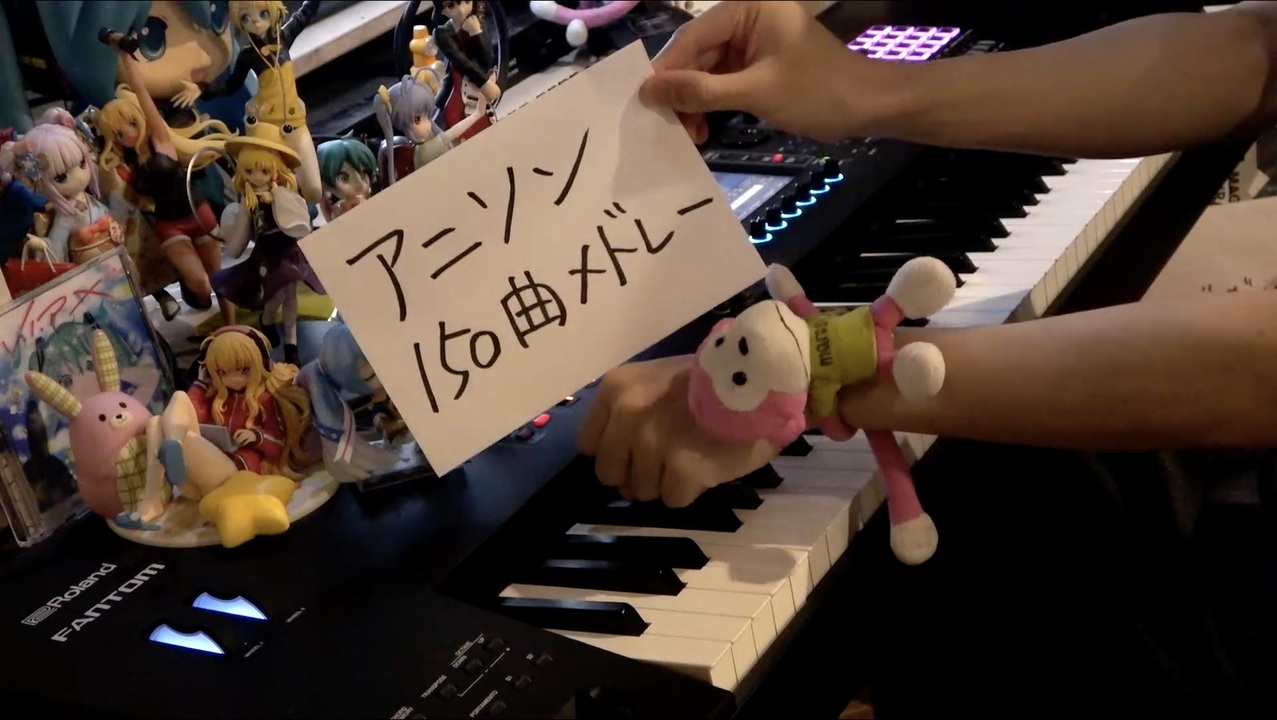まらしぃです。<br>久しぶりにアニソンメドレーをつくりました。<br>150曲、1時間23分になりました笑<br>リクエストメールを送ってもらった方、ありがとうございました!<br><br>曲順はブログにまとめてあります <br><a href="http://blog.marasy8.com/?eid=1033641" target="_blank" rel="noopener nofollow">http://blog.marasy8.com/?eid=1033641</a><br><br>アニソンメドレー前作 <a href="https://www.nicovideo.jp/watch/sm35729992" class="watch">sm35729992</a> 前前作 <a href="https://www.nicovideo.jp/watch/sm32064707" class="watch">sm32064707</a> 前前前作 <a href="https://www.nicovideo.jp/watch/sm27168394" class="watch">sm27168394</a> 前前前前作 <a href="https://www.nicovideo.jp/watch/sm22646825" class="watch">sm22646825</a><br><br>(アニソンの定義は様々と思いますが、今回は「アニメ作品で一度でも流れた楽曲」をアニソンとさせてもらっております)<br>---------------------<br>前作 <a href="https://www.nicovideo.jp/watch/sm39343466" class="watch">sm39343466</a> マイリスト <a href="https://www.nicovideo.jp/mylist/8208046" target="_blank" rel="noopener">mylist/8208046</a> <a href="https://www.nicovideo.jp/mylist/11727978" target="_blank" rel="noopener">mylist/11727978</a> <a href="https://www.nicovideo.jp/mylist/33633393" target="_blank" rel="noopener">mylist/33633393</a><br>twitter <a href="https://twitter.com/marasy8" target="_blank" rel="noopener nofollow">https://twitter.com/marasy8</a> <br>公式LINE <a href="https://line.me/R/ti/p/%40marasy" target="_blank" rel="noopener nofollow">https://line.me/R/ti/p/%40marasy</a><br>まらしぃさんチャンネル <a href="https://ch.nicovideo.jp/marasy" target="_blank" rel="noopener nofollow">https://ch.nicovideo.jp/marasy</a><br>TikTok <a href="https://vt.tiktok.com/rnxkoS" target="_blank" rel="noopener nofollow">https://vt.tiktok.com/rnxkoS</a><br>bilibili <a href="https://space.bilibili.com/489391680" target="_blank" rel="noopener nofollow">https://space.bilibili.com/489391680</a><br><br>7/28にボーカロイド楽曲のピアノアレンジアルバム「V.I.P X」をリリースさせてもらいます<br>初回盤には日本武道館ワンマンライブのDVDが付いています<br><a href="https://t.co/GaCQlekPsZ?amp=1" target="_blank" rel="noopener nofollow">https://t.co/GaCQlekPsZ?amp=1</a><br><a href="https://t.co/wEpwz4uIDU?amp=1" target="_blank" rel="noopener nofollow">https://t.co/wEpwz4uIDU?amp=1</a><br><br>11/7(日)東京立川、12/19(日)大阪でコンサートをやらせてもらいます<br><a href="https://ch.nicovideo.jp/marasy/blomaga/ar2045266" target="_blank" rel="noopener nofollow">https://ch.nicovideo.jp/marasy/blomaga/ar2045266</a>