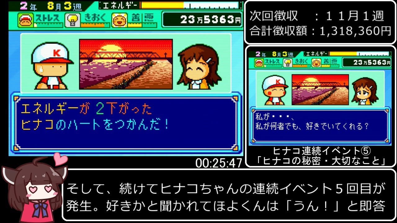 初ガバです(こっそり)<br>パワポケ音楽館2の発売、まーだ時間かかりそうですかね・・・?<br><br><br>レトロフリークでのプレイ、一部映像が乱れたのでRTA(参考記録)です。<br>〇レギュレーション<br>1.能力オールMAX(パーツの値は自由、特殊能力も自由)<br>2.仲間は”ほぼ”全員回収(一部例外あり)<br>3.ミニゲームは”全て”クリア(最終週のも含む)<br>4.ヒナコ、智美のグッドエンド回収(超特殊能力を貰うだけではダメ)<br><br><br><a href="https://www.nicovideo.jp/mylist/71954264" target="_blank" rel="noopener">mylist/71954264</a><br>part1→<a href="https://www.nicovideo.jp/watch/sm39447129" class="watch">sm39447129</a><br>part2→こ↑こ↓<br>part3(前編)→<a href="https://www.nicovideo.jp/watch/sm39478852" class="watch">sm39478852</a><br>part3(後編)→<a href="https://www.nicovideo.jp/watch/sm39479326" class="watch">sm39479326</a><br><br><br>ほよくんの前世はこちら(パワポケ1RTA)<br><a href="https://www.nicovideo.jp/mylist/71526597" target="_blank" rel="noopener">mylist/71526597</a><br><br><br>無編集→<a href="https://youtu.be/mQYin5jUCdI" target="_blank" rel="noopener nofollow">https://youtu.be/mQYin5jUCdI</a><br>