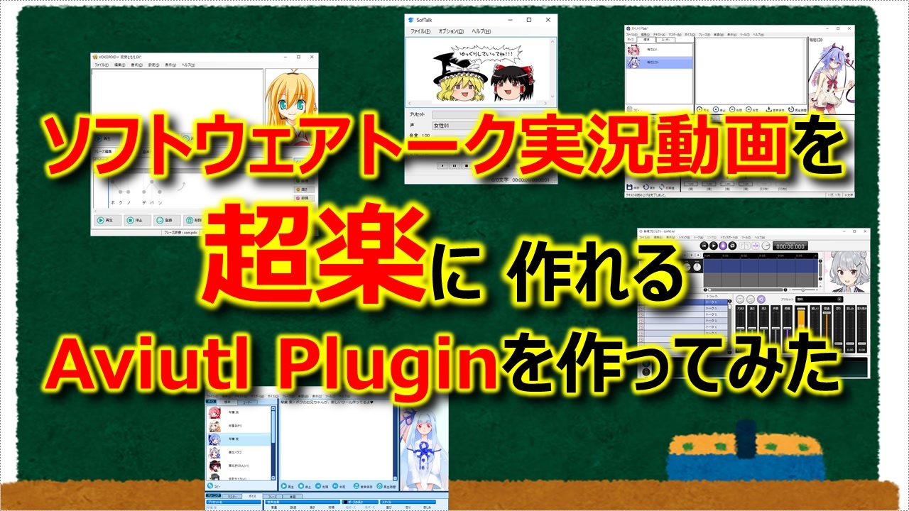■概要<br>色々なトークソフトを、aviutl上からまとめて操作し、実況動画を簡単に作れるプラグインを作りました。<br>みんな、もっと動画編集を楽にして、たくさん動画作ろうぜ!<br><br>■ダウンロードページ<br><a href="https://github.com/suzune25254649/TalkEditorUtilPlugin" target="_blank" rel="noopener nofollow">https://github.com/suzune25254649/TalkEditorUtilPlugin</a><br><br>■現在対応しているトークソフト<br>* A.I.VOICE<br>* VOICEROID2(64bit/32bit)<br>* GynoidTalk<br>* CeVIO CS7(IA, ONE、ささら、つづみ、タカハシ)<br>* CeVIO AI(小春六花、ささら, ただし多分IA, ONEも動くはず)<br>* SofTalk(ver1.93.50以降)<br>* 音街ウナTalk Ex<br>* VOICEROID+系列<br>* VOICEVOX<br>* CoeFont.CLOUD<br>* COEIROINK on VOICEVOX ←<strong>New!! 2022/05/01</strong><br><br>■対応予定<br><s>* A.I.VOICE<br>* VOICEVOX<br>* CoeFont.CLOUD</s><br><br>■<s>対応したいけどソフトを持っていないので、寄付金が欲しいもの</s><br>寄付いただきました。<br><br><s>CeVIO CS7<br>* さとうささら ¥3,300<br>* すずきつづみ ¥3,300<br>* タカハシ ¥3,300<br><br>A.I.VOICE<br>* 琴葉茜・葵 ¥12,980</s><br><br>AmazonEメールギフトにて、対応金額を寄付いただけたら幸いです。<br><a href="https://amzn.to/2eU7KnZ" target="_blank" rel="noopener nofollow">https://amzn.to/2eU7KnZ</a><br>suzune25254649@gmail.com<br><br>画像:いらすとや<br>音楽:魔王魂<br /><br>動画リスト:<a href="https://www.nicovideo.jp/user/78823020/video" target="_blank" rel="noopener nofollow">https://www.nicovideo.jp/user/78823020/video</a>