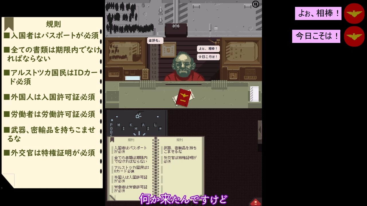 前回の動画にコメント、差し入れ、広告、いいね等ありがとうございました!<br><br>基本カットなしの垂れ流し動画です。<br>ゲーム内の会話の字幕は、定型文のようなセリフは字幕を省かせて頂いております。<br><br>今後もマイペースにOctodadと共に更新して行けたらと思っていますのでよろしくお願いします。<br><br>※この動画ではコメ返等を行うおまけのお時間はありません。ご容赦ください。<br><br>*注意*<br>・ゆっくりボイスの使用<br>・ツイステのメインストーリー、パソストのネタバレの可能性あり<br>・口調、キャラ崩壊の可能性あり<br>・妄想、捏造を含む<br>・腐コメ、夢コメ、誹謗中傷コメはご遠慮ください<br>・ドット絵ですが銃、手榴弾、人が死ぬ描写等暴力的表現あり<br>・ドット絵ですが男女の下着姿あり<br>・なるべくネタバレとなるようなコメントはお控えください<br><br><br>【ゲーム】<br>『Papers,Please』iPad版<br><br>【編集】<br>・ゆっくりMovieMaker4<br><br>ご用のある方はこちらまで↓<br>Twitter:@rindoct83_2525<br>マシュマロ:<a href="https://marshmallow-qa.com/rindoct83_2525?utm_medium=twitter&utm_source=promotion" target="_blank" rel="noopener nofollow">https://marshmallow-qa.com/rindoct83_2525?utm_medium=twitter&utm_source=promotion</a>