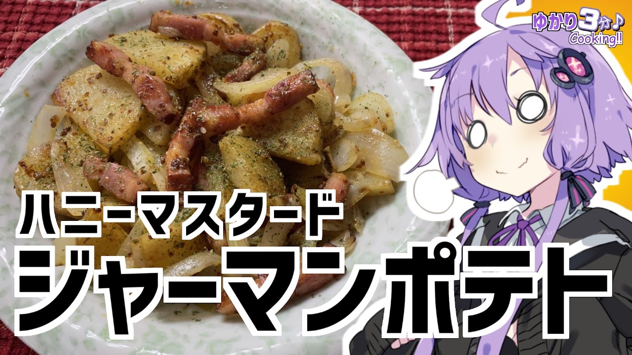 結月ゆかりを使用した料理動画です<br><br>ハニーマスタードジャーマンポテト作りました<br>美味しいけどご飯には合わない!<br><br>没になったハニーマスタードジャーマンポテトの行方は『いいね!』を押して確認してくれよな!<br><br>今回使用した材料<br>ジャガイモ:2個 タマネギ:半分<br>ベーコン:50g マスタード:大さじ1<br>ハチミツ:大さじ1/2 しょう油:小さじ1<br><br>前回のサツマイモのクリームペンネ:<a href="https://www.nicovideo.jp/watch/sm39463955" class="watch">sm39463955</a><br>VOICEROID劇場 新訳猫町:前編:<a href="https://www.nicovideo.jp/watch/sm39413951" class="watch">sm39413951</a> ←完結しました!<br>蹴上の絶景お花見スポット!JK旅:<a href="https://www.nicovideo.jp/watch/sm38890137" class="watch">sm38890137</a><br><br>オススメのボイロ劇場<br>茜ちゃんと葵ちゃんの現代怪異占い:<a href="https://www.nicovideo.jp/watch/sm38263500" class="watch">sm38263500</a><br><br>ツイッター:<a href="https://twitter.com/mrt89244817" target="_blank" rel="noopener nofollow">https://twitter.com/mrt89244817</a>