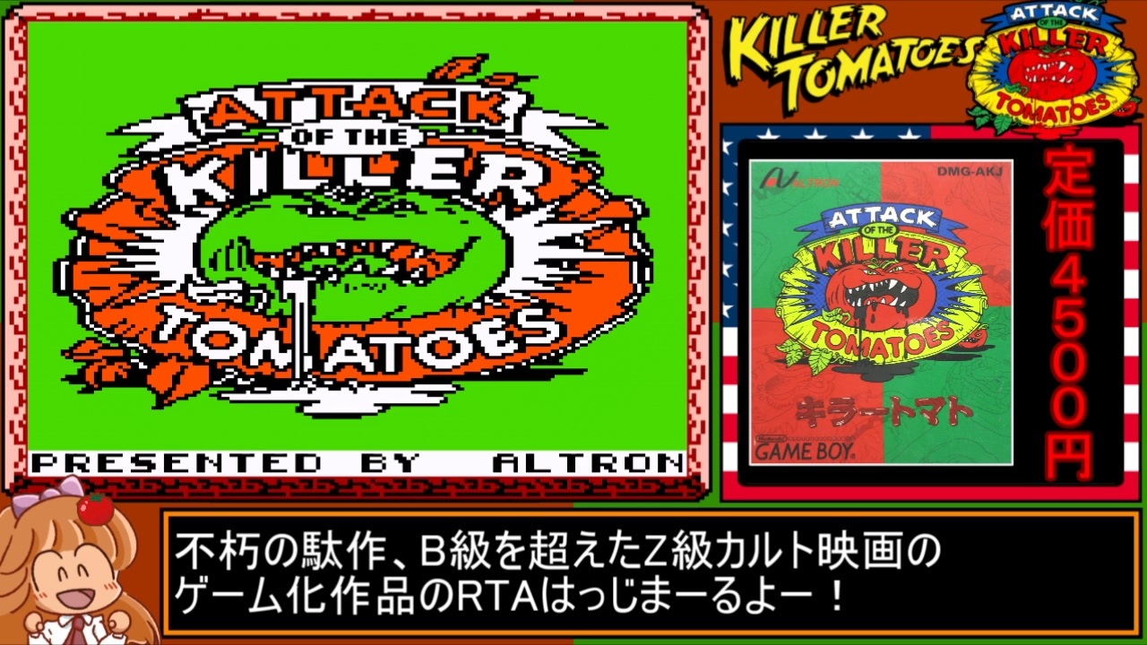 最上最悪のZ級映画のゲームなので初投稿です。<br>ぜひ原作映画の方も見てみようね!<br><br>次作→<a href="https://www.nicovideo.jp/watch/sm39671890" class="watch">sm39671890</a> (筋肉であそぼう)<br>前作→<a href="https://www.nicovideo.jp/watch/sm39333760" class="watch">sm39333760</a> (おでかけレスターれれれのれ(^^;)<br>自作RTA→<a href="https://www.nicovideo.jp/mylist/66567417" target="_blank" rel="noopener">mylist/66567417</a><br><br>レギュレーション<br>計測開始:スタートボタンを押した瞬間<br>計測終了:エンディングに移行した瞬間<br>環境:レトロフリーク・GV-USB 3.0・スーパーファミコンコントローラー・アマレコTV4<br><br /><br><span style="font-size: 18px;"><strong>↓</strong></span><span style="color: #ff0000; font-size: 18px;"><strong>生放送(毎日20時~24時くらい)</strong></span><br><span style="font-size: 18px;"><strong><a href="https://www.twitch.tv/yuyukichi2" target="_blank" rel="noopener nofollow">https://www.twitch.tv/yuyukichi2</a><br>↓</strong></span><span style="color: #0000ff; font-size: 18px;"><strong>ツイッター</strong></span><br><span style="font-size: 18px;"><strong><a href="https://twitter.com/YuyukichiRTA" target="_blank" rel="noopener nofollow">https://twitter.com/YuyukichiRTA</a><br>↓</strong></span><span style="color: #ff9900; font-size: 18px;"><strong>ホームページ</strong></span><br><span style="font-size: 18px;"><strong><a href="https://yuyukichirta.wixsite.com/yuyukichi" target="_blank" rel="noopener nofollow">https://yuyukichirta.wixsite.com/yuyukichi</a></strong></span>
