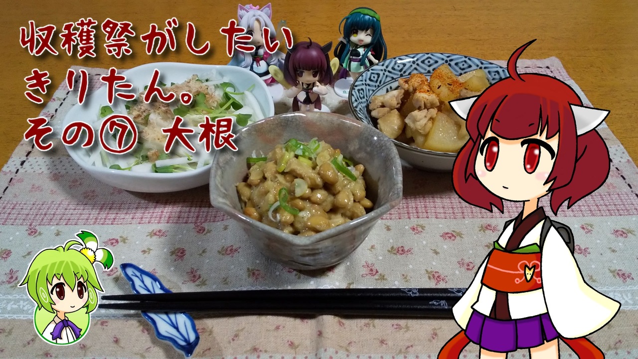 すごく…大きいです…(大根が)<br><br>辛い大根おろしが苦手な方は、頭(上部)の方を使うか、軽くレンジでチン! すると辛みが抜けます。<br><br>ふろふき大根、大根ステーキ、葉っぱを使って大根菜飯など、まだまだレシピは尽きないので、いずれ通常回でも大根料理をやりたいですね。<br><br>※きりたんのレンジでチン! は、特記がない限り全て600ワットです。