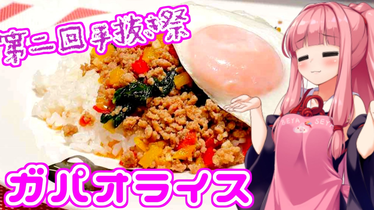 <span style="color: #ff0000; font-size: 18px;"><strong>だーやまん様</strong></span><span style="color: #262626;">(</span><a href="https://twitter.com/Dahjaman" target="_blank" rel="noopener nofollow">https://twitter.com/Dahjaman</a> )主催の手抜き祭に参加させていただきました!!<br><br>『第二回手抜き祭』告知動画はこちら!<br><a href="https://www.nicovideo.jp/watch/sm39360624" target="_blank" rel="noopener nofollow">https://www.nicovideo.jp/watch/sm39360624</a><br><br><br>【材料】<br>・ひき肉 200g<br>・パプリカ 1/2個<br>・バジル 適量<br>・にんにく 1個<br>・ナンプラー 大さじ1<br>・醤油 小さじ1<br>・オイスターソース 小さじ1<br>・豆板醤 小さじ1/2<br>・砂糖 小さじ1/2<br>・ごま油 適量<br><br>【作り方】<br>・パプリカに種を取ったら角切り、にんにくはみじん切りにします。<br>・フライパンにごま油を入れたらにんにく、豆板醤を入れ炒めます。<br>・香りが立ってきたらひき肉を入れ、火が通ってきたらパプリカを入れて炒めます。<br>・ナンプラー、オイスターソース、醤油、砂糖を入れて味をなじませたら<br>・最後にバジルを入れて軽く炒めます。<br>・ご飯にかけてお好みで目玉焼きを乗せたら完成!<br><br><br>【☆お借りした素敵な素材☆(順不同)<br><br>【立ち絵】<br>ハーパー様<br><br>【素材・BGM】<br>ニコニ・コモンズ様<br>フリーBGM:DOVA-SYNDROME様<br>フリー素材「イラストAC」様<br><br><br>最後にこの動画を見てくださった皆様に心からの感謝と、<br>これからも良きご縁がありますように!(*´ω`*)<br><br>前作品:マキちゃんのカシューナッツ炒め【<a href="https://www.nicovideo.jp/watch/sm39503555" class="watch">sm39503555</a> 】<br>次回作:【第二回手抜き祭】ゆかりさんが歌うだけ【<a href="https://www.nicovideo.jp/watch/sm39541712" class="watch">sm39541712</a> 】<br><br><br>ツイッター、You Tubeやってます♪<br>【Twitter:<a href="https://twitter.com/moegimon" target="_blank" rel="noopener nofollow">https://twitter.com/moegimon</a> 】<br><br>【<a href="https://www.youtube.com/channel/UCP2N3uBfzKEoqCGviIvs0Ew" target="_blank" rel="noopener nofollow">https://www.youtube.com/channel/UCP2N3uBfzKEoqCGviIvs0Ew</a> 】