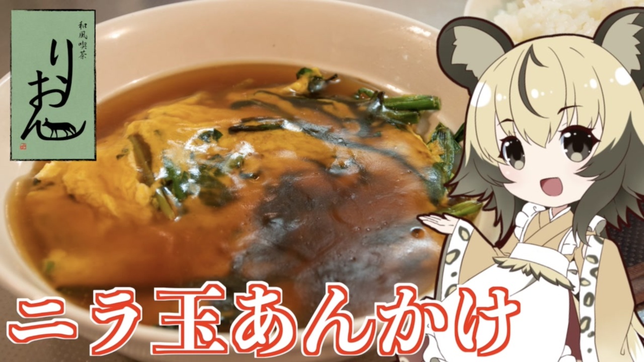 今回は「ニラ玉あんかけ」を作ります。<br><br>とっても簡単ですごく短時間でできるので、<br>忙しいときにも嬉しいメニューですよ!<br>それにとってもご飯と合いますよ。<br><br><br>■材料<br>・ニラ 1束<br>・卵 3個<br><br>・水 180−200mL<br>・鶏ガラスープの素 小さじ1<br>・オイスターソース 小さじ2<br>・片栗粉 大さじ1<br><br>■所要時間<br>作業時間:10分<br><br>youtube:<a href="https://youtu.be/aK-n7lJNu_4" target="_blank" rel="noopener nofollow">https://youtu.be/aK-n7lJNu_4</a><br />twitter:@lycaon_kitchen<br><br>りおんの和風喫茶:<a href="https://www.nicovideo.jp/series/77190" target="_blank" rel="noopener">series/77190</a><br>おつかれごはん:<a href="https://www.nicovideo.jp/series/155690" target="_blank" rel="noopener">series/155690</a><br>手作り和菓子でちょっとひとやすみしませんか?:<a href="https://www.nicovideo.jp/series/155691" target="_blank" rel="noopener">series/155691</a><br><br><span style="color: rgba(0, 0, 0, 0.87);">立ち絵:</span>星華 彩二魔 様<br><span style="color: rgba(0, 0, 0, 0.87);">イラスト:いらすとや、AWD kitchen<br>音源:DOVA-SYNDROME、ポケットサウンド<br>音声:VOICEROID2 </span>紲星あかり、東北イタコ + exVOICE