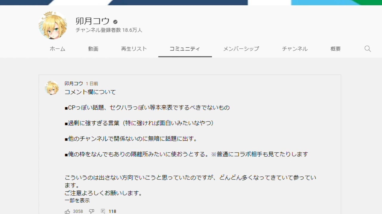 卯月コウはリスナーにはセクハラ等注意しているようだが、配信でセクハラ発言している相手とのコラボは問題なかったんだろうか。<br>そんな相手とコラボする事により少なからずともリスナーにも影響してしまったのが一つの原因だと思う。<br><br>アシキch:【突発V凸待ち】バーチャルYoutuberのみなさん、僕とお話しませんか?<br><a href="https://www.youtube.com/watch?v=T_e-x-6Jd6E" target="_blank" rel="noopener nofollow">https://www.youtube.com/watch?v=T_e-x-6Jd6E</a><br><br>卯月コウ<br><a href="https://www.youtube.com/channel/UC3lNFeJiTq6L3UWoz4g1e-A" target="_blank" rel="noopener nofollow">https://www.youtube.com/channel/UC3lNFeJiTq6L3UWoz4g1e-A</a>