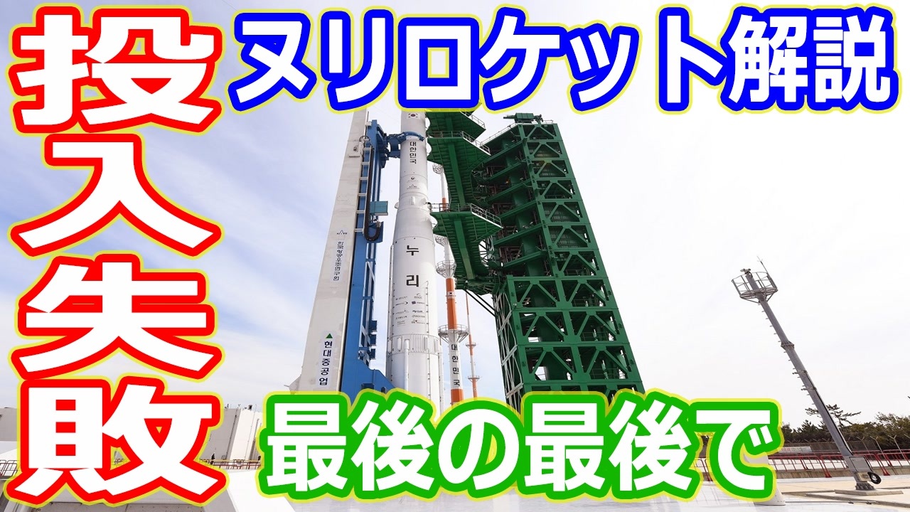 【訂正】三段目の原因について、初期は慣性誘導装置のエラーor故障と言われてましたが<br>今は、酸化剤タンクの圧力低下が有力とされています<br>ヘリウムガスで推進剤を押して燃焼室に送るガス押し式ですが、それでも圧力が保たれないことを考えるとタンクや配管・バルブに異常があり漏れていったかもしれません<br>この原因追及には時間がかかりそうです<br><br>今回は、韓国が打ち上げたKSLV-2ヌリロケット1号機解説です<br>1998年から紆余曲折ありながらようやく完成したヌリロケット1号機が2021年10月21日に打ち上げられました<br>一段目二段目は順調でしたが、三段目に異常があり軌道投入に失敗しました<br>子の解説では、ヌリロケットの歴史を踏まえながら失敗した原因について、現時点で判明してることを解説します<br><br>【いちおし宇宙系】<br>・アマゾンリンク<br><a href="https://amzn.to/2S8xjpH" target="_blank" rel="noopener nofollow">https://amzn.to/2S8xjpH</a><br>・元JAXA研究員も驚いた! ヤバい「宇宙図鑑」<br><a href="https://amzn.to/3awwble" target="_blank" rel="noopener nofollow">https://amzn.to/3awwble</a><br>・はじめてのうちゅうえほん(子ども向け)<br><a href="https://amzn.to/3iTLY22" target="_blank" rel="noopener nofollow">https://amzn.to/3iTLY22</a><br><br>公平性や中立性を考えてアフィリエイトリンクは控えていましたが、得た収益を次のレビュー書籍や機材代にするために始めました<br>よろしくお願いします<br><br>へえ~と思ったらチャンネル登録と高評価をお願います<br>ツイッターでは、たまに宇宙ネタをつぶやいています<br><br>◆チャンネル登録はこちら<br><a href="http://www.youtube.com/channel/UChOv-TZWg3X4MDjFUF8CfQg?sub_confirmation=1" target="_blank" rel="noopener nofollow">http://www.youtube.com/channel/UChOv-TZWg3X4MDjFUF8CfQg?sub_confirmation=1</a><br>◆サブチャンネル(スカイ三平の雑多推進研究所)<br><a href="http://www.youtube.com/channel/UCpQEOLtOpmXUwslvgi93yQw?sub_confirmation=1" target="_blank" rel="noopener nofollow">http://www.youtube.com/channel/UCpQEOLtOpmXUwslvgi93yQw?sub_confirmation=1</a><br>◆twitterはこちら<br><a href="https://twitter.com/skysanpei" target="_blank" rel="noopener nofollow">https://twitter.com/skysanpei</a>