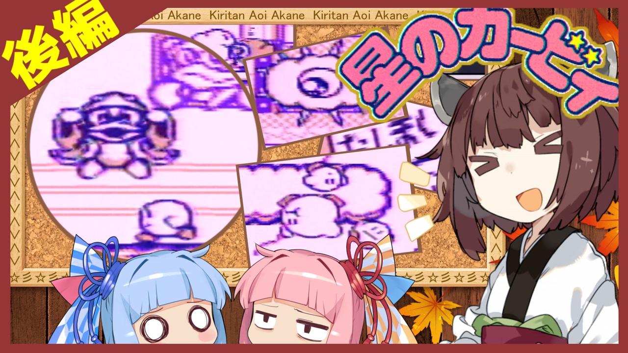 <span style="font-size: 16px;"><strong>本動画は、ぷっくら様主催『ボイロレトロゲーム実況祭』参加動画の</strong></span><br><span style="color: #ff0000; font-size: 24px;"><strong>後編</strong></span><strong> </strong><span style="font-size: 16px;"><strong>です!</strong></span><br>前編を視聴していない方は、先にそちらの視聴をお勧めします。<br>いつも通りきりたんがガチガチに縛られてます。<br>完走出来て良かった!!!!<br><span style="color: #0000ff; font-size: 24px;"><strong>前編⇒</strong></span><span style="font-size: 24px;"><a href="https://www.nicovideo.jp/watch/sm39504507" class="watch">sm39504507</a></span><br><br>【縛り内容】<br>・ノーコンクリア<br>・オワタ式<br>・EXモード攻略<br><br><br>企画概要⇒<a href="https://www.nicovideo.jp/watch/sm39243440" class="watch">sm39243440</a><br>主催者:ぷっくら様⇒<a href="https://www.nicovideo.jp/user/295540" target="_blank" rel="noopener nofollow">https://www.nicovideo.jp/user/295540</a><br>★ゲーム<br>『星のカービィ』<br><br>★使用立ち絵<br>かみち様⇒【SDピコピコ琴葉姉妹2】:<a href="https://seiga.nicovideo.jp/seiga/im6815058" target="_blank" rel="noopener">im6815058</a><br>からい様⇒【素材】東北きりたん立ち絵:<a href="https://seiga.nicovideo.jp/seiga/im7760810" target="_blank" rel="noopener">im7760810</a><br> 【素材】琴葉姉妹立ち絵:<a href="https://seiga.nicovideo.jp/seiga/im7847458" target="_blank" rel="noopener">im7847458</a><br>akihiyo様⇒立ち琴葉茜・葵素材:<a href="https://seiga.nicovideo.jp/seiga/im10569073" target="_blank" rel="noopener">im10569073</a><br> 立ち東北きりたん素材:<a href="https://seiga.nicovideo.jp/seiga/im10601764" target="_blank" rel="noopener">im10601764</a><br><br><br><br>★投稿者<br>twitter⇒<a href="https://twitter.com/high18595354" target="_blank" rel="noopener nofollow">https://twitter.com/high18595354</a><br><br>