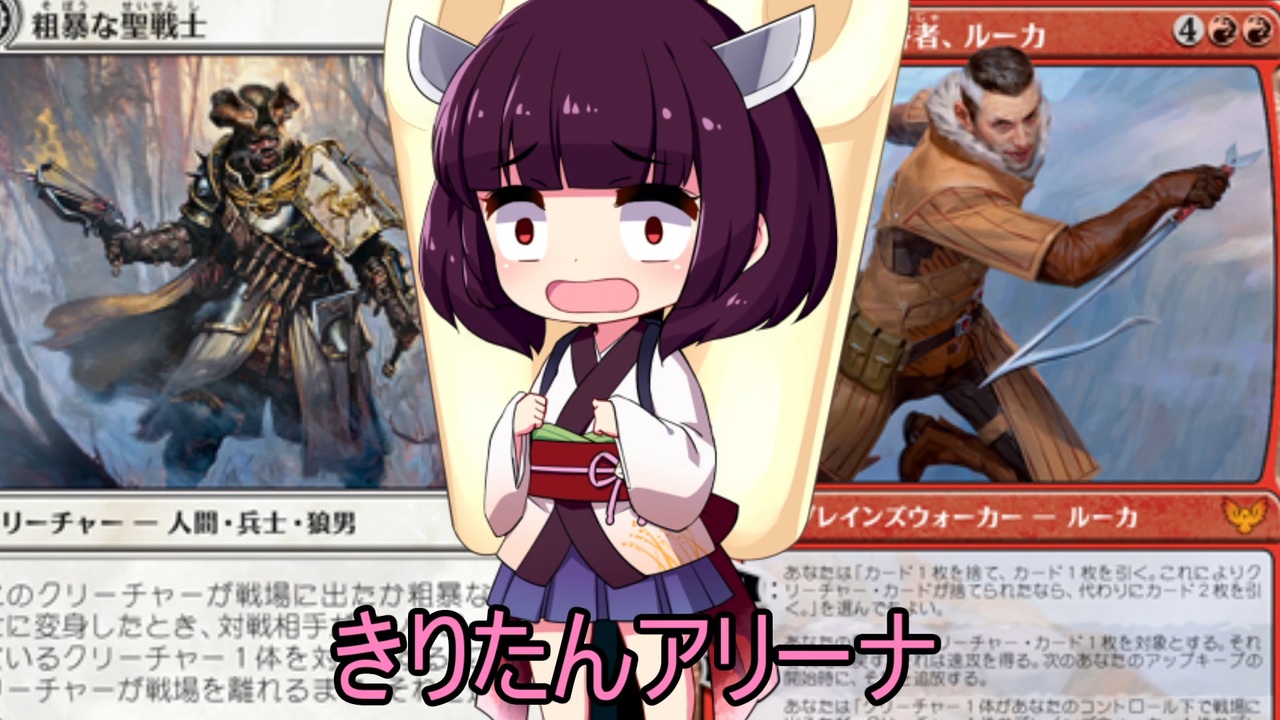 しばらくブロールデッキ組んでないなぁと思ってる今日この頃(´・ω・`)<br><br>【使用デッキ】<br>白赤オールクリーチャーデッキ<br><br>【アリーナ公式】<br><a href="https://magic.wizards.com/en/mtgarena" target="_blank" rel="noopener nofollow">https://magic.wizards.com/en/mtgarena</a><br>【配信】<br><a href="https://www.twitch.tv/kiritanex" target="_blank" rel="noopener nofollow">https://www.twitch.tv/kiritanex</a><br>【YouTube・連絡先・Twitter】<br>マイリストに表記<br><br>【前回の広告者様動画】<br>TEPIA様:「紲星あかりはライブラリーをめくりたい」<a href="https://www.nicovideo.jp/watch/sm35229450" class="watch">sm35229450</a><br>nununu様:「フェイ庄の古老で無限コンボ!、他」<a href="https://www.nicovideo.jp/mylist/66711538" target="_blank" rel="noopener">mylist/66711538</a><br>ラーメン王様:「結月ゆかりのミラクル解説ラジオ」<a href="https://www.nicovideo.jp/mylist/62359037" target="_blank" rel="noopener">mylist/62359037</a><br>白ウイスキー様:「アリーナのアは茜ちゃんのア」<a href="https://www.nicovideo.jp/mylist/69289902" target="_blank" rel="noopener">mylist/69289902</a><br>AHE様:「MTG一人対戦」<a href="https://www.nicovideo.jp/mylist/54219502" target="_blank" rel="noopener">mylist/54219502</a><br>ソンチョー様「4人でMTGAやりましょ!」<a href="https://www.nicovideo.jp/mylist/64931307" target="_blank" rel="noopener">mylist/64931307</a><br>Luin様:「PWあかりのアリーナ対戦録」<a href="https://www.nicovideo.jp/mylist/66293742" target="_blank" rel="noopener">mylist/66293742</a><br>あずきバー.様:「きりたんっぽいなにかのM O生活」<a href="https://www.nicovideo.jp/mylist/63412664" target="_blank" rel="noopener">mylist/63412664</a><br>TKY様:「弦巻 The Gathering」<a href="https://www.nicovideo.jp/series/173355" target="_blank" rel="noopener">series/173355</a><br>林原めぐみ好きのおっちゃん様:「ゆかマキMTG実況」<a href="https://www.nicovideo.jp/series/155646" target="_blank" rel="noopener">series/155646</a><br>ものまねうさぎ様:「初心者でもモダンがしたい!」<a href="https://www.nicovideo.jp/watch/sm32508742" class="watch">sm32508742</a><br>ロストドール様:「ロストドールのアリーナ対戦録」<a href="https://www.nicovideo.jp/series/242181" target="_blank" rel="noopener">series/242181</a><br>BlueSky様:「【MTGA】ドラフトで遊ぶ」<a href="https://www.nicovideo.jp/mylist/67869251" target="_blank" rel="noopener">mylist/67869251</a><br>あきみず様:「イタコマジック」<a href="https://www.nicovideo.jp/series/240030" target="_blank" rel="noopener">series/240030</a><br>サーボ・打撲様:「京町セイカの黄金体験、他」<a href="https://www.nicovideo.jp/mylist/60650047" target="_blank" rel="noopener">mylist/60650047</a><br>稲尾様:「とにかくタフネスで殴り抜ける。」<a href="https://www.nicovideo.jp/mylist/66067276" target="_blank" rel="noopener">mylist/66067276</a><br><br><br><a href="https://www.nicovideo.jp/mylist/63851869" target="_blank" rel="noopener">mylist/63851869</a> 前:<a href="https://www.nicovideo.jp/watch/sm39495356" class="watch">sm39495356</a> 次:<a href="https://www.nicovideo.jp/watch/sm39582500" class="watch">sm39582500</a><br>