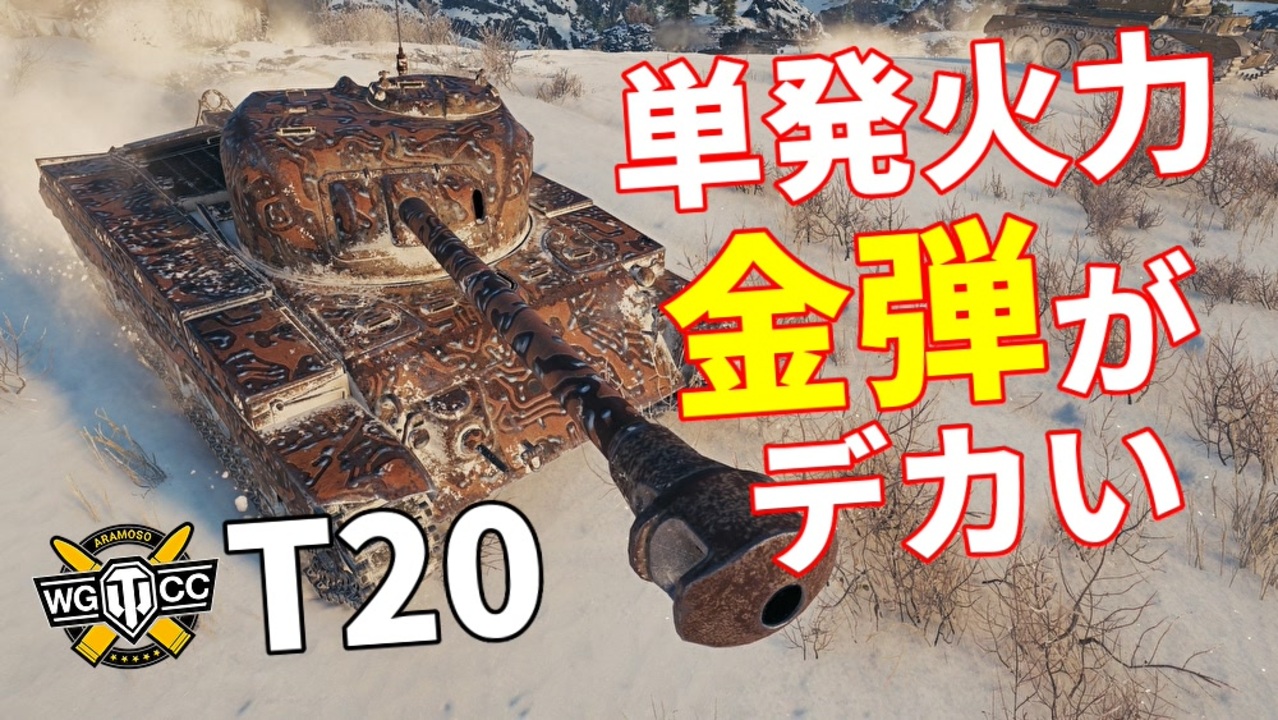 アジアサーバーでWoTを始めよう!<br>好評につき、新規プレイヤー向け招待ミッションが復活!<br>新しくWoTをプレイする方向けに「ミッション付き招待コード」を配布中です。<br>新規アカウントを作る際、コード入力画面に「ARAMOSO」と入れるだけでOK!<br>やったぜ。様々なチャレンジミッションをクリアして報酬をGETだ!<br><br>【コード内容】<br>・500ゴールド<br>・WoTプレミアムアカウント3日分<br>・100Kクレジット<br>・ポーランドプレミアム車両 TKS zn/.k.m 20mm(100%乗員付き)<br>・繰り返し可能なデイリーミッション(EXP、クレジットブースター)<br><br>~~~~~ここから動画説明~~~~~<br>金弾なら「デカい」より貫通力が「高い」だろって思ったやつ。窓際行って、落ちろ。<br><br>■プレイヤー:haharo_tumugi<br>■搭乗戦車:T20(アメリカのTier7中戦車)<br><br>■YouTube版(高画質)はコチラから<br>URL→<a href="https://youtu.be/R5g3E5vnRLE" target="_blank" rel="noopener nofollow">https://youtu.be/R5g3E5vnRLE</a><br><br>前→<a href="https://www.nicovideo.jp/watch/sm39535290" class="watch">sm39535290</a> 次→<a href="https://www.nicovideo.jp/watch/sm39543947" class="watch">sm39543947</a><br>WoT用マイリスト【<a href="https://www.nicovideo.jp/mylist/71731968" target="_blank" rel="noopener">mylist/71731968</a>】<br>WoTクランウォーズ動画【<a href="https://www.nicovideo.jp/mylist/55801134" target="_blank" rel="noopener">mylist/55801134</a>】<br>ツイッター【mosomondo】<br><br>【前パートの広告感謝ァ!】<br>ドラコニアさん、hiroroさん、キュベレイさん、うっち~さん、Accelさん、tsonさん、souさん、手動販売さん、はいいろさん、pochiさん、kohimeさん、RAISEさん、mawasiさん、くろうさぎさん、raytonaさん、Lyさん、うらんさん、テンペスターEXさん、エコーさん、阿武山さん、ken・レーツェルさん、純音さん、カノープスさん、みんえいさん、小さな緑の人さん、えっしゃ~さん、バーバ・ヤーガさん、doragonさん、唐物ゴブさん<br><br>[この動画はウォーゲーミングジャパン株式会社が権利を所有する著作物を利用しております。c Wargaming.net]