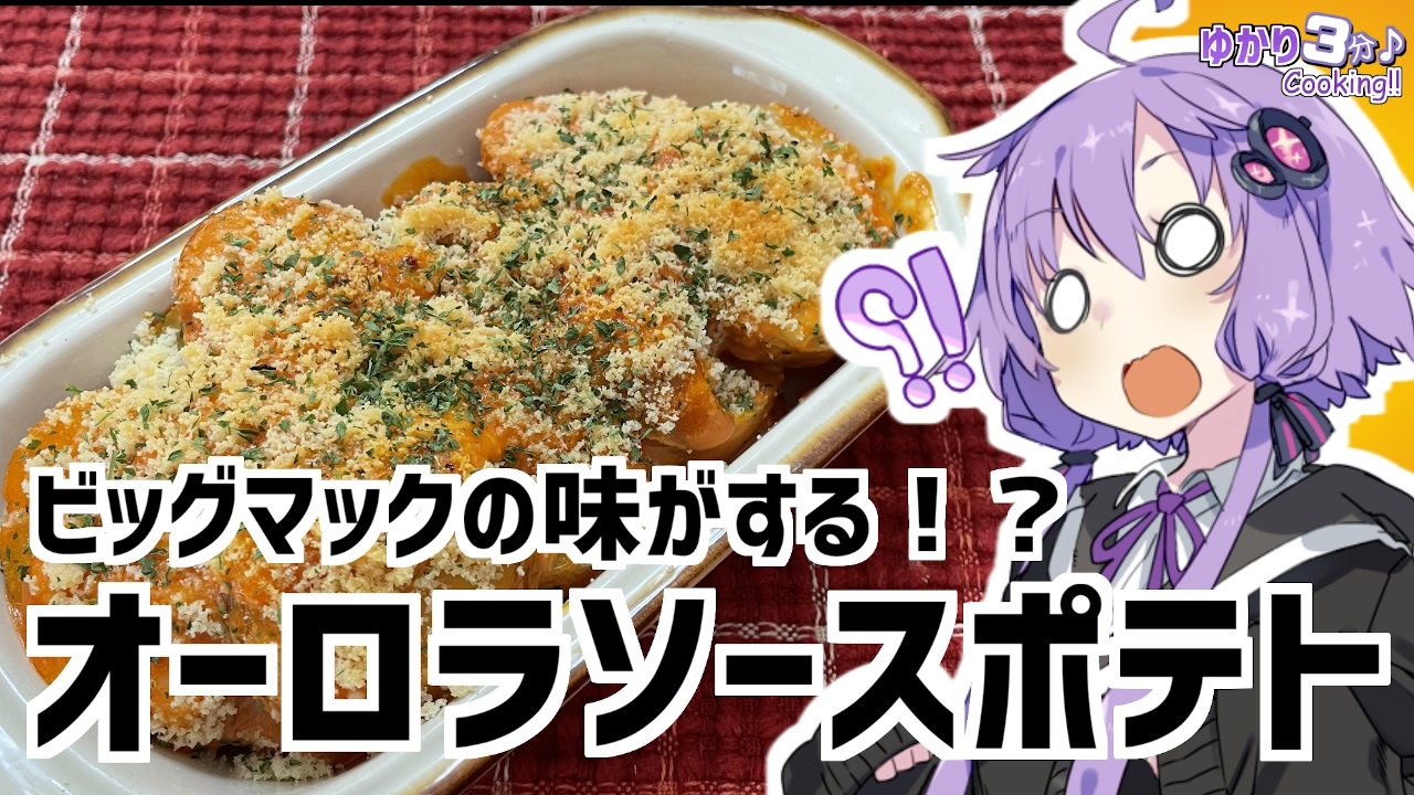結月ゆかりを使用した料理動画です<br><br>ジャガイモにオーロラソースかけて食べました!<br>マクドナルドの味がしました!<br><br>マクドのホントのところは『いいね!』を押して確認してくれよな!<br><br>今回使用した材料<br>ジャガイモ:2個 マヨネーズ:大さじ2<br>ケチャップ:大さじ2 ピザ用チーズ:30g<br>塩コショウ:少々 パルメザンチーズ:少々<br>パセリ:あれば<br><br>前回のワンポットパスタ:<a href="https://www.nicovideo.jp/watch/sm39540433" class="watch">sm39540433</a><br>VOICEROID劇場 新訳猫町:<a href="https://www.nicovideo.jp/watch/sm39506126" class="watch">sm39506126</a><br>蹴上の絶景お花見スポット!JK旅:<a href="https://www.nicovideo.jp/watch/sm38890137" class="watch">sm38890137</a><br><br>オススメのボイロ劇場<br>茜ちゃんと葵ちゃんの現代怪異占い:<a href="https://www.nicovideo.jp/watch/sm38263500" class="watch">sm38263500</a><br><br>ツイッター:<a href="https://twitter.com/mrt89244817" target="_blank" rel="noopener nofollow">https://twitter.com/mrt89244817</a>