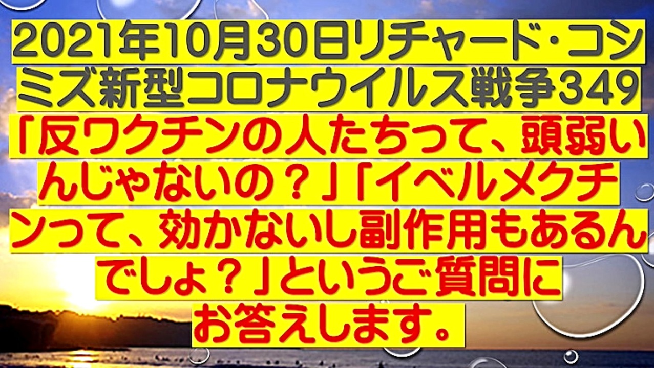 <span style="color: #cc4125;"><strong>「 テーマ:新型コロナウイルス戦争 349 」</strong></span><br><br><span style="color: #ff0000;"><strong>「『 反コロナワクチンの人たちって、頭弱いんじゃないの? 』・『 イベルメクチンって<br> 効かないし、副作用もあるんでしょ? 』というご質問にお答えします 」</strong></span><br><br> <span style="color: #38761d;">◆</span><span style="color: #38761d;"><strong>リチャード・コシミズ 公式 ブログ</strong></span><br> <a href="https://ameblo.jp/richardneversurrender/" target="_blank" rel="noopener nofollow">https://ameblo.jp/richardneversurrender/</a><br><br> <span style="color: #38761d;">◆</span><span style="color: #38761d;"><strong>リチャード・コシミズ 公式 ホームページ</strong></span><br> <a href="http://richardkoshimizu.boo.jp/" target="_blank" rel="noopener nofollow">http://richardkoshimizu.boo.jp/</a><br><br> <span style="color: #38761d;">◆</span><span style="color: #38761d;"><strong>リチャード・コシミズ 講演会 公式 動画ギャラリー</strong></span><br> <a href="http://www.t-sskk.com/richardkoshimizu/video-gallery/index.html" target="_blank" rel="noopener nofollow">http://www.t-sskk.com/richardkoshimizu/video-gallery/index.html</a><br>