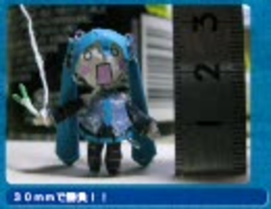ども、うp主です。<br>昨今の「はちゅね小型化戦争」に、ついカッとなって参戦。<br>平面では勝てそうに無いので、最近勃発した立体で勝負してみました。<br><br>はちゅねペパクラ:<a href="http://homepage3.nifty.com/basara/pepakura_file.htm" target="_blank" rel="noopener nofollow">http://homepage3.nifty.com/basara/pepakura_file.htm</a> からお借りしました。<br>ネタ元の40mmはちゅね:<a href="https://www.nicovideo.jp/watch/sm3943698" class="watch">sm3943698</a><br>絵の出典:温・湿度計のチルノ/大沖様<br><br>追記:よく見ると28mmくらいだそうで。うp主はノギスとか持ってないんで定規片手に目分量で30mmかな・・・って測ってました。<br>追記2(7/15 21:20):20mmに記録を更新しました。:<a href="https://www.nicovideo.jp/watch/sm3972823" class="watch">sm3972823</a><br><br>これまでのうp主の作ったもの:<a href="https://www.nicovideo.jp/mylist/7063376" target="_blank" rel="noopener">mylist/7063376</a>