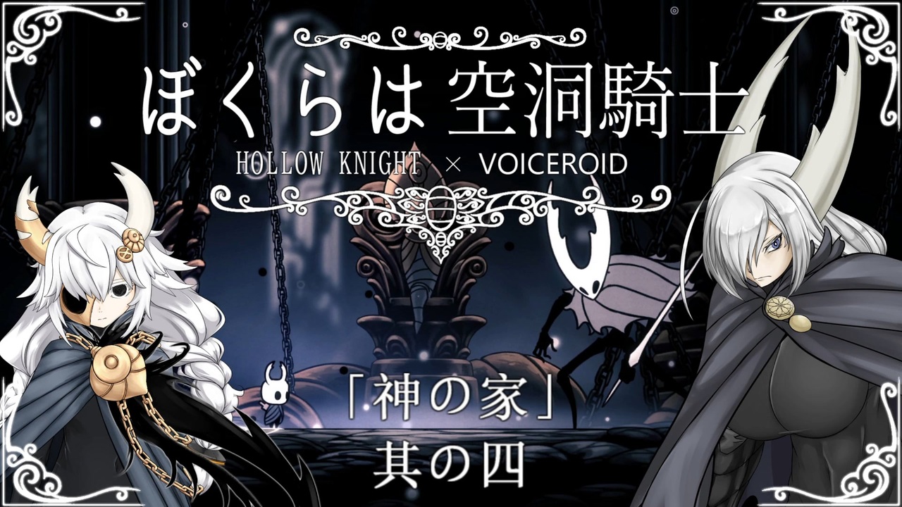 <strong>『ぼくらは空洞騎士』神の家編 其の四</strong><br>小さくなったあかりちゃんと、それを見守る者たちの、<br>『HollowKnight』を舞台にしたお話です。<br><br>とおいむかしに、すべてをせおった、ぼくのきょうだい。<br>なにかをはなさなきゃいけないきがするけど、<br>ぼくらはくぎをむけあったほうが、てっとりばやい。<br><span style="color: #000000; font-size: 14px;">―放浪者の日誌より―</span><br><br>始めから感じていた、心のどこかで。<br>強い衝動の裏にある渇きを。<br>激しい闘志の底に潜む飢えを。<br>きょうだい。<br>自分が自分であるために、捨ててきたものの数を数える。<br>声にならない声が聞こえてくる。<br>「純粋なる器」。<br>呪われし子孫は束ねられる。<br><br><strong>支援絵いただけました!!</strong><br>さかな2号様(@OSAKANA2Gou)<br><a href="https://bit.ly/3nIIAZx" target="_blank" rel="noopener nofollow">https://bit.ly/3nIIAZx</a><br><br>ぬく(元惨田)様<br><a href="https://seiga.nicovideo.jp/seiga/im10797156" target="_blank" rel="noopener">im10797156</a><br><a href="https://seiga.nicovideo.jp/seiga/im10797165" target="_blank" rel="noopener">im10797165</a><br><a href="https://seiga.nicovideo.jp/seiga/im10797173" target="_blank" rel="noopener">im10797173</a><br><br><br>遅くなりました。<br>投稿が遅れたのはリアルが色々忙しかったから以外に特に無いです。<br>失踪する気はさらさらありません。<br><br><a href="https://www.nicovideo.jp/mylist/69010174" target="_blank" rel="noopener">mylist/69010174</a><br><a href="https://www.nicovideo.jp/watch/sm39106000" class="watch">sm39106000</a><其の3 神の家編 其の5><a href="https://www.nicovideo.jp/watch/sm39705760" class="watch">sm39705760</a><br><br>▼本編バックナンバー<br><a href="https://www.nicovideo.jp/watch/sm36786120" class="watch">sm36786120</a><第一話 <br><a href="https://www.nicovideo.jp/watch/sm38154009" class="watch">sm38154009</a><最終話(前編)