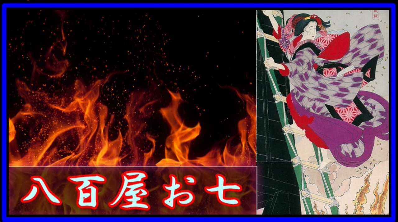 "八百屋お七"っていう名前、凄く良いですよね。<br>僕が中学生の時に考えたオリジナルキャラクター"覇天マカライト"君くらい良いセンスしてると思います。<br><br><i>〈2021年7月4日にYouTubeにて投稿された動画です〉</i><br><br>僕のツイッター→<a href="https://twitter.com/lg3merasikyou" target="_blank" rel="noopener nofollow">https://twitter.com/lg3merasikyou</a> <br>次 →<br><br>歴史上人物part1→<a href="https://www.nicovideo.jp/watch/sm31283646" class="watch">sm31283646</a> 黒歴史上人物part1→<a href="https://www.nicovideo.jp/watch/sm29248037" class="watch">sm29248037</a><br>ゆっくり歴史解説マイリスト→<a href="https://www.nicovideo.jp/mylist/53809988" target="_blank" rel="noopener">mylist/53809988</a><br>part1集→<a href="https://www.nicovideo.jp/mylist/53269590" target="_blank" rel="noopener">mylist/53269590</a>