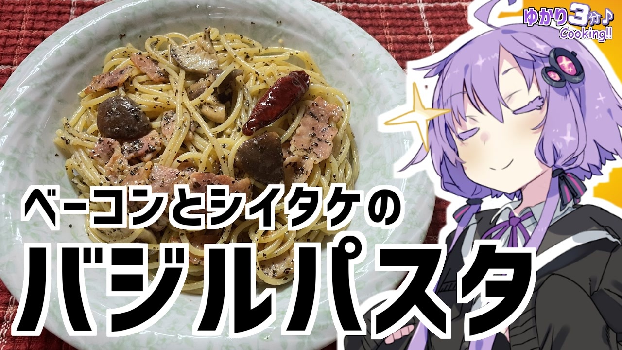 結月ゆかりを使用した料理動画です<br><br>ベーコンとシイタケのバジルスパゲッティ作りました!<br>私のバジルはあと80gくらいあるぞ!<br><br>最近のイラっとした出来事は『いいね!』を押して確認してくれよな!<br><br>今回使用した材料<br>スパゲッティ:1人分 ベーコン:1枚<br>バジル:小さじ1 コンソメ:小さじ1/2<br>唐辛子:1個 ニンニク:大さじ1<br>塩コショウ:少々<br><br>前回のマスタードパン粉焼き:<a href="https://www.nicovideo.jp/watch/sm39565427" class="watch">sm39565427</a><br>VOICEROID劇場 新訳猫町:<a href="https://www.nicovideo.jp/watch/sm39506126" class="watch">sm39506126</a><br>蹴上の絶景お花見スポット!JK旅:<a href="https://www.nicovideo.jp/watch/sm38890137" class="watch">sm38890137</a><br><br>オススメのボイロ劇場<br>茜ちゃんと葵ちゃんの現代怪異占い:<a href="https://www.nicovideo.jp/watch/sm38263500" class="watch">sm38263500</a><br><br>ツイッター:<a href="https://twitter.com/mrt89244817" target="_blank" rel="noopener nofollow">https://twitter.com/mrt89244817</a>