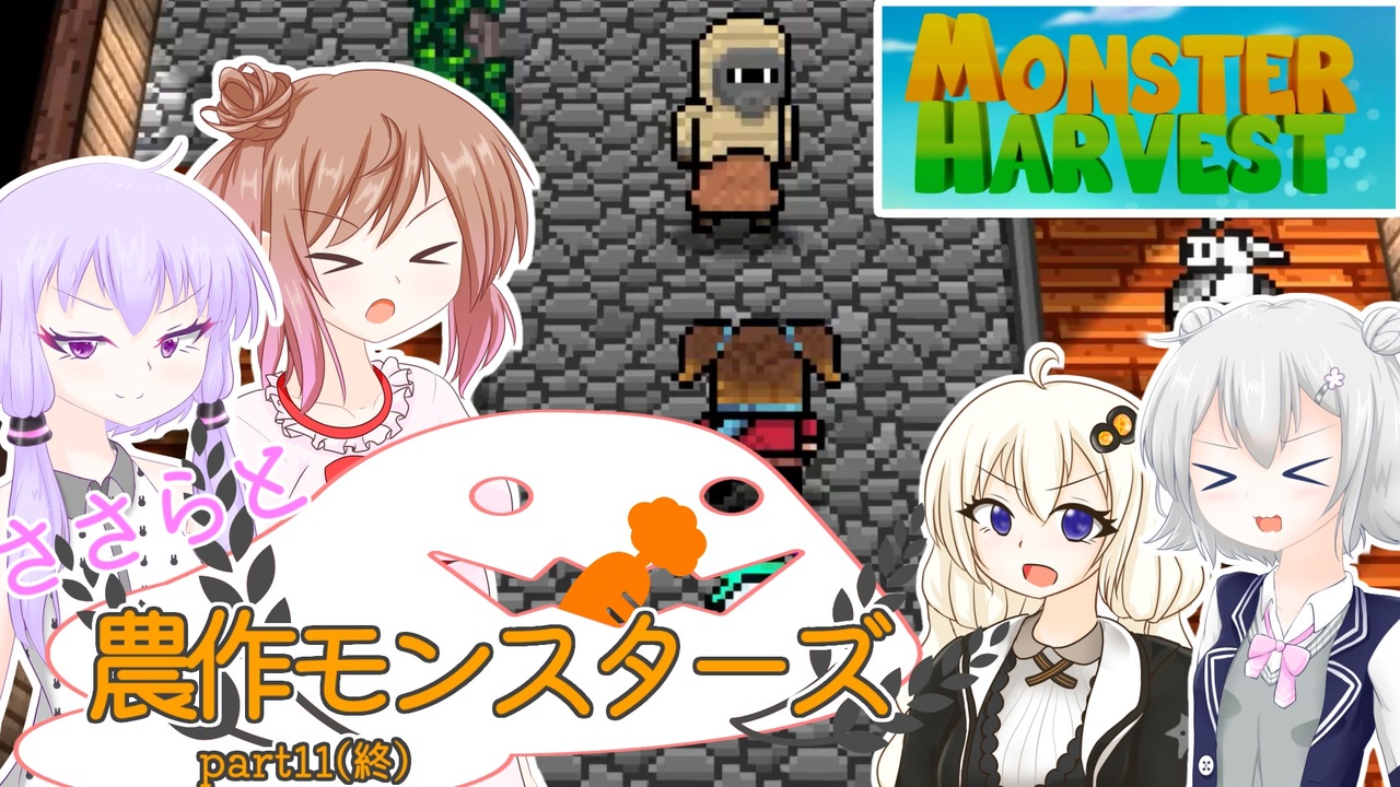 作物のモンスターを育てる農場経営ゲーム「Monster Harvest」の実況プレイです。<br><br>前【 <a href="https://www.nicovideo.jp/watch/sm39560485" class="watch">sm39560485</a> 】<br>part1【 <a href="https://www.nicovideo.jp/watch/sm39227052" class="watch">sm39227052</a> 】他part1+単発リスト【 <a href="https://www.nicovideo.jp/mylist/67381404" target="_blank" rel="noopener">mylist/67381404</a> 】<br><br>最後の敵だったけどあっさり!<br><br>◎ゲーム◎<br>Monster Harvest : <a href="https://store.steampowered.com/app/1363350/Monster_Harvest/" target="_blank" rel="noopener nofollow">https://store.steampowered.com/app/1363350/Monster_Harvest/</a><br><br>◎つかったもの◎<br> ・Aviutl ・VOICEROID2 ・CeVIO AI ・CeVIO Creative Studio<br> ・A.I.VOIVE ・PSDtoolKit