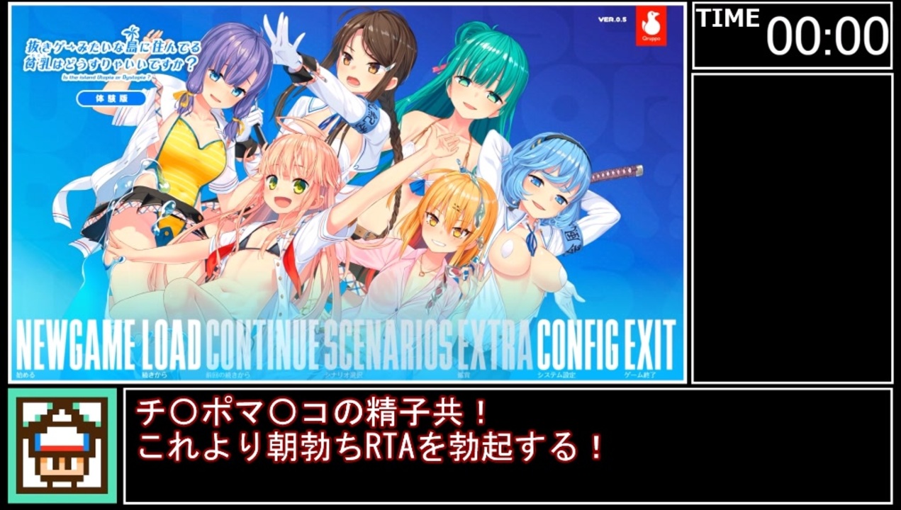<span style="color: #ff0000;"><strong>ぬきたしアニメ化だって!?<br>僕のデータにないぞ!</strong></span><br><br>タイマースタート:始めるを押した瞬間<br>タイマーストップ:3つ目のムービー前の暗転時<br><br>レギュレーション(<a href="https://www.nicovideo.jp/watch/sm37128092" class="watch">sm37128092</a>を参考)<br>・体験版<br>・データを削除を実施<br>・RTA開始前に設定を弄るのは有り<br><br>RTApat1まとめ:<a href="https://www.nicovideo.jp/mylist/56827667" target="_blank" rel="noopener">mylist/56827667</a><br>ツイッター(更新報告等):@yamabukiginu<br><br>抜きゲーみたいな島に住んでる貧乳はどうすりゃいいですか?<br><a href="https://qruppo.com/products/nukitashi/" target="_blank" rel="noopener nofollow">https://qruppo.com/products/nukitashi/</a><br>抜きゲーみたいな島に住んでる貧乳はどうすりゃいいですか?2<br><a href="https://qruppo.com/products/nukitashi2/" target="_blank" rel="noopener nofollow">https://qruppo.com/products/nukitashi2/</a><br>ヘンタイ・プリズン<br><a href="https://qruppo.com/products/henpri/" target="_blank" rel="noopener nofollow">https://qruppo.com/products/henpri/</a>