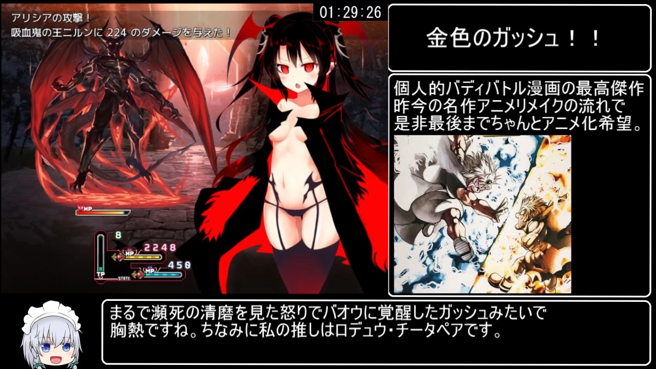 フ本パートで最終回となります。<br>ィ長らくお付き合い下さり、<br>ム誠にありがとうございました。<br>の素晴らしい作品を作って下さり、<br>ち動画作成の許可を下さった作者様<br>っ再生、コメント、マイリス、良いね、広告で<br>ぱ動画を盛り上げて下さった視聴者様<br>い関わった皆様方<br>吸全てに感謝申し上げます。<br>い本当にありがとうございました。<br>たまたどこかで!<br>い<br><br>【にんじんパスタ】様制作のR-18RPG<br>【ヴァンパイア・ノーツ】グッドエンドRTAです。<br><br>計測開始:始めからを選択した瞬間<br>計測終了:ラスボス撃破後、暗転した瞬間<br><br><a href="https://www.nicovideo.jp/watch/sm39578851" class="watch">sm39578851</a>←前 <br><br>パート1→<a href="https://www.nicovideo.jp/watch/sm39444727" class="watch">sm39444727</a><br><br>ヴァンパイア・ノーツRTAマイリスト→ <a href="https://www.nicovideo.jp/mylist/71956235" target="_blank" rel="noopener">mylist/71956235</a><br><br>単発&パート1:<a href="https://www.nicovideo.jp/mylist/70659794" target="_blank" rel="noopener">mylist/70659794</a><br><br>Twitter:@hihidowser<br><br>スマホやタブレット等から見られない方はこちらの動画を参考にすると<br>見られるようになるはずです→ <a href="https://www.nicovideo.jp/watch/sm38575952" class="watch">sm38575952</a><br><br><span style="font-size: 16px;"><strong>本作【ヴァンパイア・ノーツ】の購入は下記サイトにて!<br>DLsite(PC)<br><br>FANZA(PC)<br><br></span></strong>