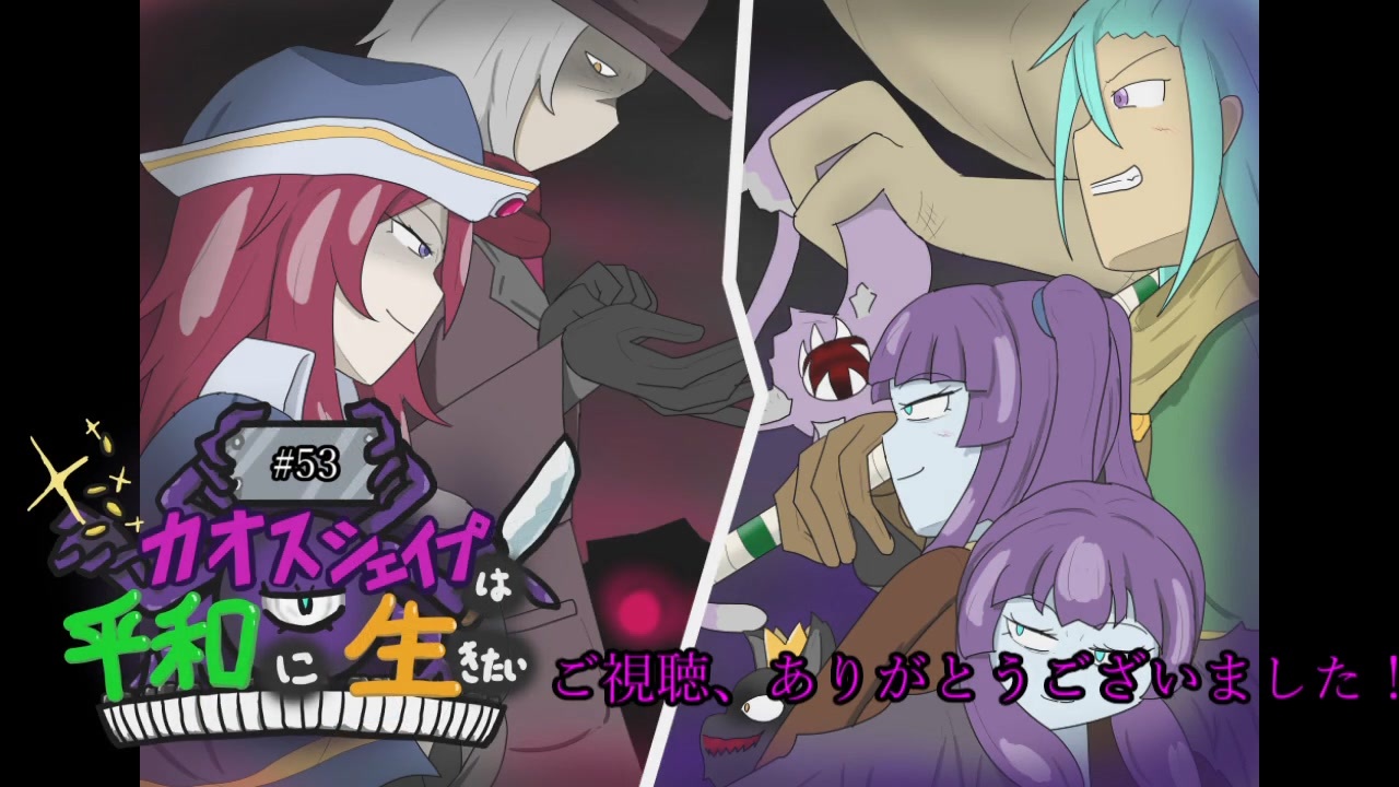 <span style="color: #ff00ff; font-size: 18px;"><strong>金目のものを出しな!でなきゃハラワタかっさばいてやる!</strong></span><br><br>大変おまたせしましたァ!絵がめっちゃ多くて大変だった!<br>今回はほとんどゲームが進行しません。劇場モリモリ。<br><br><span style="color: #ff9900;"><strong>追記(2021/11/16/22:13)</strong></span><br><span style="color: #ff9900;">動画内で言い忘れていましたが、最終回の後に前シリーズでもあった#あとがき回があります。<br>#53~#54のコメント返しもしたいからね!<br>#53.5の最後にあとがき回について話そうかと思いましたが、<br>最後の支援絵を仕上げている方がコメントにいたので急遽追記しました。<br>ゆっくりで大丈夫ですぜ!</span><br><br><span style="color: #ff0000;"><strong>前回→</strong></span><a href="https://www.nicovideo.jp/watch/sm39544344" class="watch">sm39544344</a><span style="color: #ff0000;"><strong> </strong></span><span style="color: #0000ff;"><strong>次回→</strong></span><a href="https://www.nicovideo.jp/watch/sm39697479" class="watch">sm39697479</a><br><span style="color: #00ffff;"><strong>#01→</strong></span><a href="https://www.nicovideo.jp/watch/sm35254850" class="watch">sm35254850</a> <span style="color: #ff00ff;"><strong>カオスシェイプは平和に生きたいのマイリスト→</strong></span><a href="https://www.nicovideo.jp/mylist/65679530" target="_blank" rel="noopener">mylist/65679530</a><br><span style="color: #00ff00;">Pixiv</span>→<a href="https://www.pixiv.net/member.php?id=20356595" target="_blank" rel="noopener nofollow">https://www.pixiv.net/member.php?id=20356595</a>