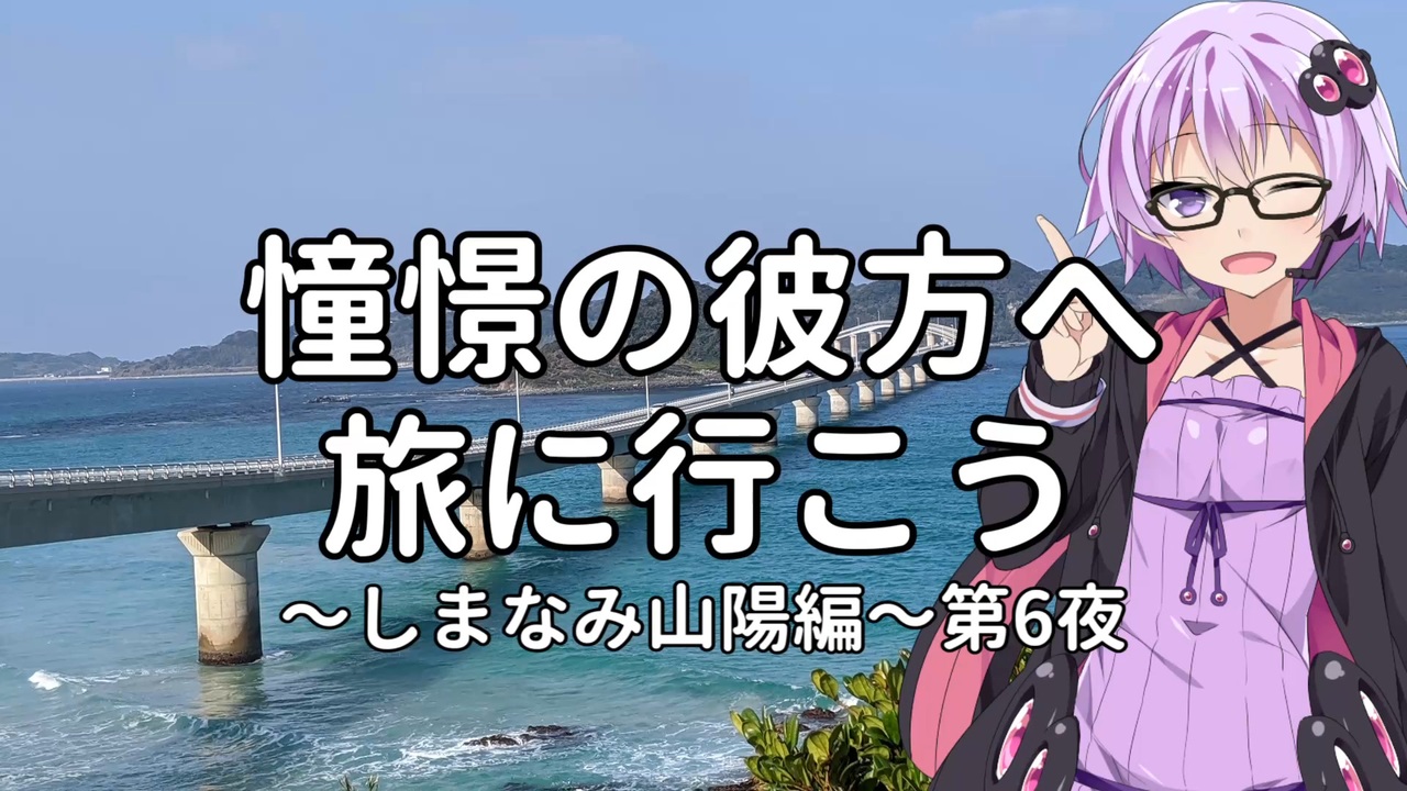 <span style="font-size: 24px;">本番は乗ってる時なんだよぉ(切実)</span><br><br>(追記)<br>一部動画内で一部不適切なシーンがありましたため、再編集しての投稿になります。<br>編集前の投稿分に頂いた広告やコメント等はバックアップをとって次回最終夜に繋げます。<br>ご迷惑をおかけしてしまい申し訳ありませんでした(追記終わり)<br><br>山口市へと辿り着いた我々が次に向かうのは、山陽最後の地にして海峡の街「下関」。しかしその道中、目を疑うような絶景の数々、そして本州四端ラストの場所「毘沙ノ鼻」からの景色に出会いに行きます。そしてその夜はまさかの…?<br><br>スーパーカブと巡る旅路、シリーズしまなみ山陽編第6夜。コバルトブルーの海を走る景色をご覧ください!最後まで油断せずに!!!<br><br><br>シリーズマイリスト<a href="https://www.nicovideo.jp/mylist/70704211" target="_blank" rel="noopener">mylist/70704211</a><br><br>前回(第5夜)<a href="https://www.nicovideo.jp/watch/sm39352824" class="watch">sm39352824</a>|今ココ(第6夜)|次回 (最終夜)<a href="https://www.nicovideo.jp/watch/sm39767664" class="watch">sm39767664</a><br>【過去のシリーズ】<br>‣九州一周編<a href="https://www.nicovideo.jp/series/21601" target="_blank" rel="noopener">series/21601</a><br><br>‣本州最南端編<a href="https://www.nicovideo.jp/series/21605" target="_blank" rel="noopener">series/21605</a><br><br>‣東北一周編<a href="https://www.nicovideo.jp/series/64320" target="_blank" rel="noopener">series/64320</a><br><br>‣日本最北端編<a href="https://www.nicovideo.jp/series/119783" target="_blank" rel="noopener">series/119783</a><br><br>本州四端踏破ラリーについての詳細はこちら。<br>皆さんもぜひ原付でやろう。私もやったんだから(同調圧力)<br><a href="http://www.city.shimonoseki.lg.jp/www/contents/1355305542928/index.html" target="_blank" rel="noopener nofollow">http://www.city.shimonoseki.lg.jp/www/contents/1355305542928/index.html</a><br><br>支援作品を頂いたレグルスさんの作品はこちら。<br>制服あかりちゃんの調声が丁寧で好き。最近MMDの編集もしてて凄い。<br>・Re:曽爾高原 編<a href="https://www.nicovideo.jp/watch/sm39279204" class="watch">sm39279204</a><br>・【MMD】ニア【鳴花ヒメ・ミコト】<a href="https://www.nicovideo.jp/watch/sm39363109" class="watch">sm39363109</a><br><br>支援作品を頂いた銀べこさんの作品はこちら。<br>選曲から動画の雰囲気までスタイリッシュで、しかも自作立ち絵まで創る素晴らしいセンス。<br>レヴィちゃんカッコかわいい。<br>・ゆかりと仄々道中譚~能登半島編~<a href="https://www.nicovideo.jp/watch/sm38979598" class="watch">sm38979598</a><br><br>本編登場のeichaさんの作品はこちら。<br>出てくる料理全部美味しそう…。食い意地張ってるあかりちゃんは可愛い(可愛い)<br>・紲星あかりは美味しいものが食べたい in 天草<a href="https://www.nicovideo.jp/watch/sm36565454" class="watch">sm36565454</a><br><br>本編登場のりょくちゃさんの作品はこちら。<br>気持ち低めで落ち着いた声のあかりちゃんとても良き。特に短髪なところがとても良き。<br>・北海道 その4 -輪と環27-<a href="https://www.nicovideo.jp/watch/sm39116690" class="watch">sm39116690</a>