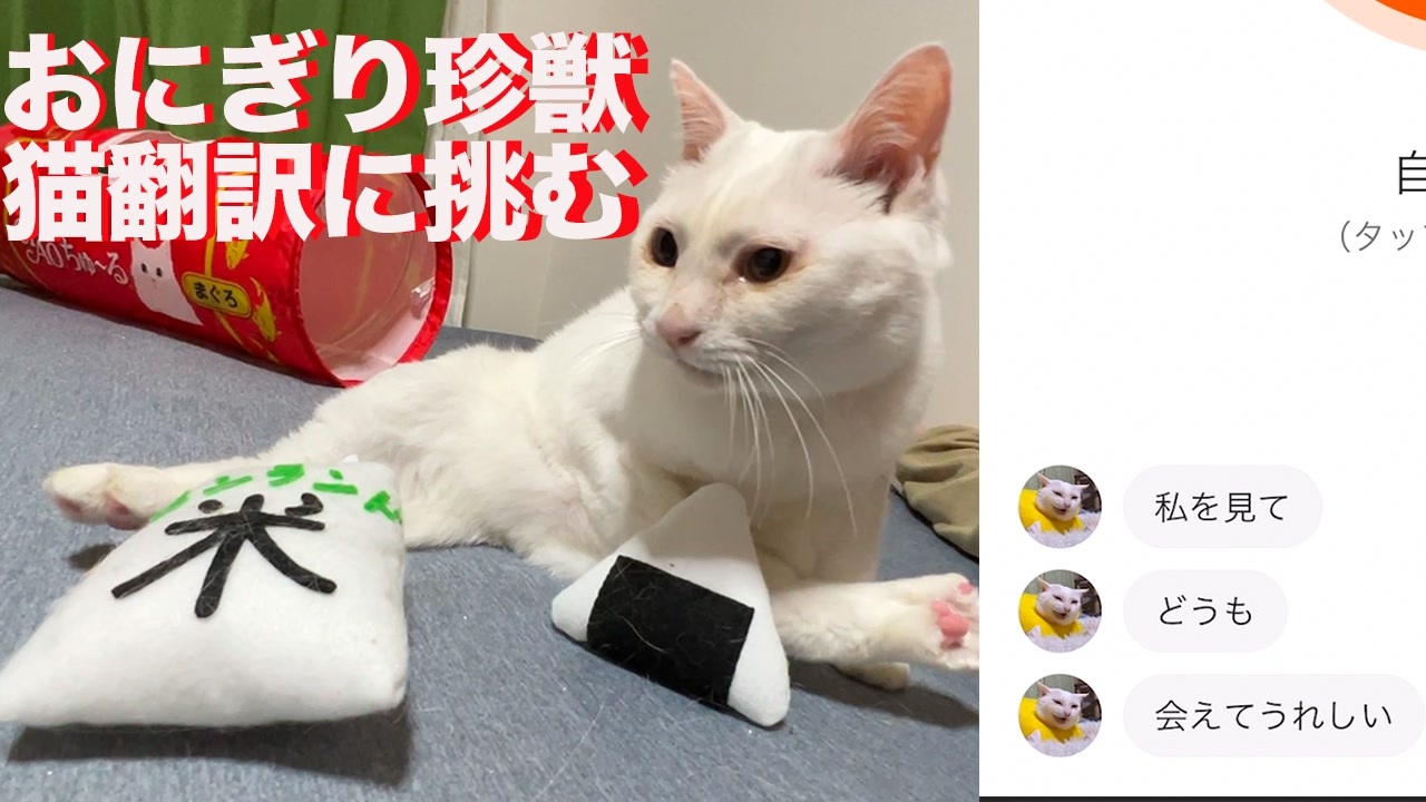 2018年10月に栃木県より保護預かりした曉璘。<br>当初は非常に衰弱しており自分に対しても少し怯えていましたが療養で回復、気がつけば朝晩ぶるにゃぶるにゃと大騒ぎをして家の中で出迎えるのが日課に。<br>そこで、そのぶるにゃがちゃんと猫語なのかを猫語翻訳アプリの「にゃんトーク」で試してみました。<br>別画面で録画のため多少ラグはありますが、だいたい鳴き声と翻訳のタイミングは合ってると思います。<br><br>簡単な登場猫紹介 <a href="http://blog.livedoor.jp/nekokamasu/archives/56241249.html" target="_blank" rel="noopener nofollow">http://blog.livedoor.jp/nekokamasu/archives/56241249.html</a><br>よくあるご質問 <a href="http://blog.livedoor.jp/nekokamasu/archives/57126148.html" target="_blank" rel="noopener nofollow">http://blog.livedoor.jp/nekokamasu/archives/57126148.html</a><br>ブログ <a href="http://blog.livedoor.jp/nekokamasu/" target="_blank" rel="noopener nofollow">http://blog.livedoor.jp/nekokamasu/</a>