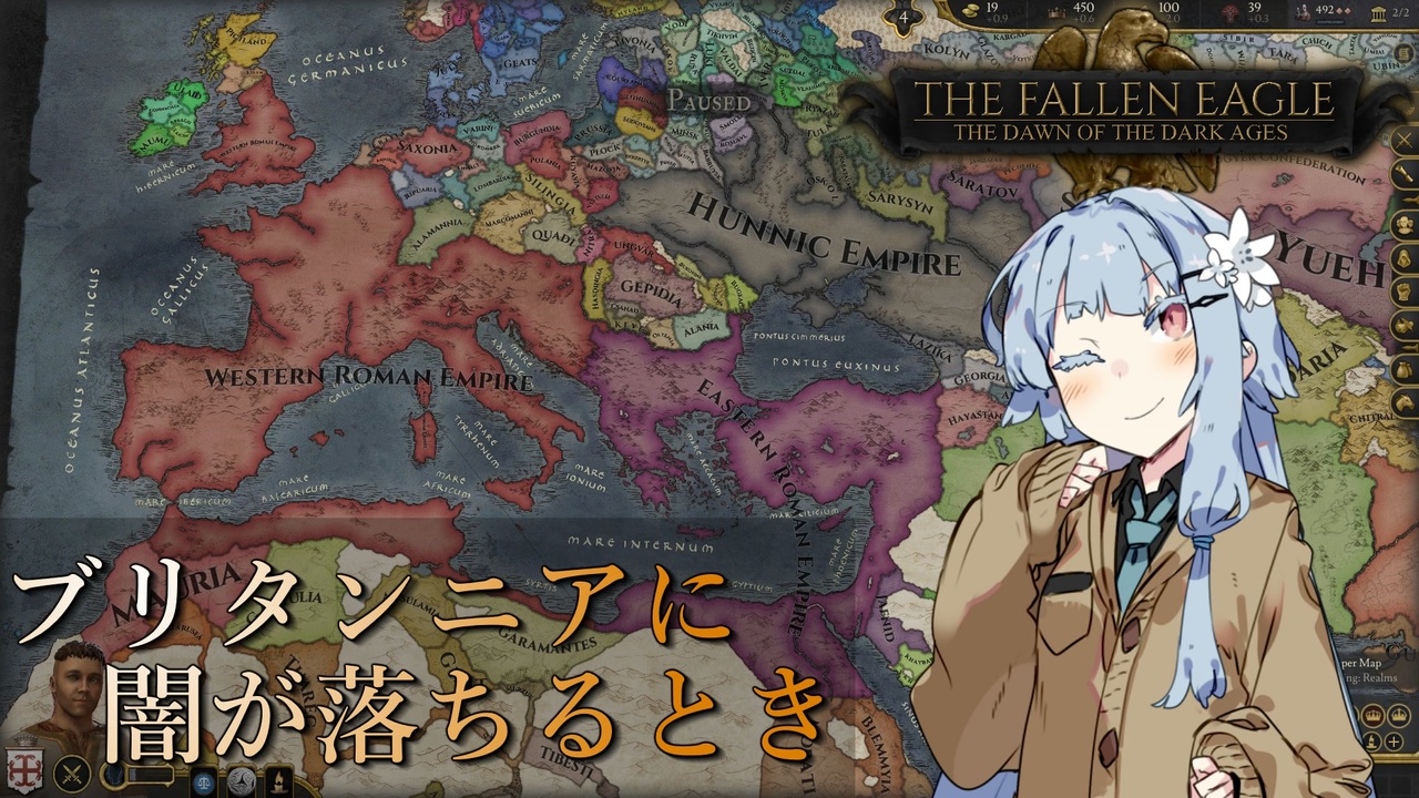 <a href="#" class="seekTime" data-seekTime="03:49" onclick="seekNicoPlayer('#03:49'); return false;">#03:49</a>までほぼ雑談です。<br><br>あかりちゃんときりたんのバニラのシリーズはDLCが出るまでお休みにします。<br>今回はほぼ説明回なので葵ちゃん単独ですが、次回からは茜ちゃんにも登場してもらう予定です。<br><br>前: いいや、ないよ<br>次: <a href="https://www.nicovideo.jp/watch/sm39699261" class="watch">sm39699261</a><br>マイリス: <a href="https://www.nicovideo.jp/mylist/72219968" target="_blank" rel="noopener">mylist/72219968</a><br><br>使用Mod<br>The Fallen Eagle: The Dawn of the Dark Ages<br><a href="https://steamcommunity.com/sharedfiles/filedetails/?id=2243307127" target="_blank" rel="noopener nofollow">https://steamcommunity.com/sharedfiles/filedetails/?id=2243307127</a>