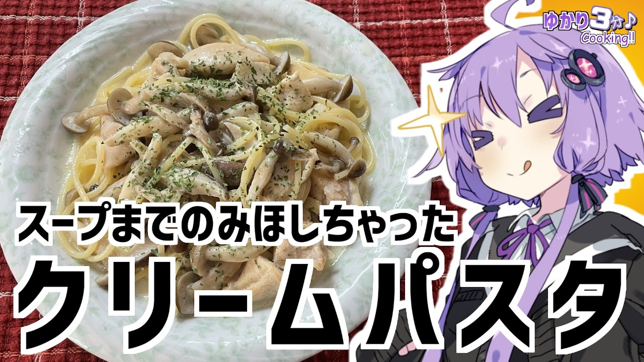 結月ゆかりを使用した料理動画です<br><br>キノコと鶏肉のクリームパスタ作りました<br>ソースがメチャウマ!<br><br>知恩院で紹介したかったものは『いいね!』ボタンを押して確認してくれよな!<br><br>今回使用した材料<br>スパゲッティ:1把 しいたけ:2個<br>シメジ:半分 鶏もも肉:50g<br>コンソメ:小さじ1 牛乳:200ml<br>塩:適量<br><br>前回の蒸し鶏:<a href="https://www.nicovideo.jp/watch/sm39635271" class="watch">sm39635271</a><br>VOICEROID劇場 新訳猫町:<a href="https://www.nicovideo.jp/watch/sm39506126" class="watch">sm39506126</a><br>やっと完結したJK旅京都お花見編:<a href="https://www.nicovideo.jp/watch/sm39639517" class="watch">sm39639517</a><br><br>オススメのボイロ劇場<br>茜ちゃんと葵ちゃんの現代怪異占い:<a href="https://www.nicovideo.jp/watch/sm38263500" class="watch">sm38263500</a><br><br>ツイッター:<a href="https://twitter.com/mrt89244817" target="_blank" rel="noopener nofollow">https://twitter.com/mrt89244817</a>