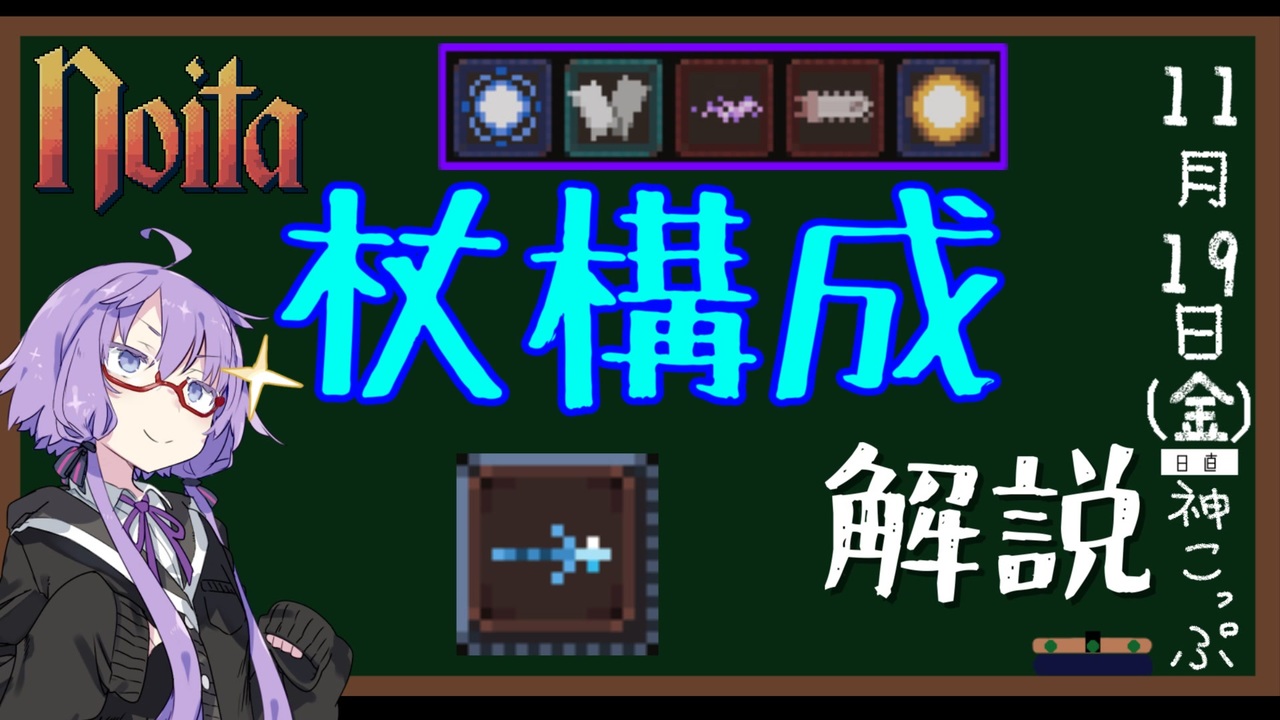 結月ゆかり<br>「noitaは自分で楽しいスペルを組むゲームなのですが、組み方が分からないと最大限楽しめないですからね。少しでも杖構成の手助けになれば嬉しいです。詠唱遅延やリチャージ時間の減らし方だったり、杖ループの仕組みなど中級者にも使えるようなテクニックも解説しています。」<br><br>【参考にさせてもらったサイト】<br>・英語wiki<br><a href="https://noita.fandom.com/ja/wiki/%E3%83%AF%E3%83%B3%E3%83%89" target="_blank" rel="noopener nofollow">https://noita.fandom.com/ja/wiki/%E3%83%AF%E3%83%B3%E3%83%89</a><br><br>【検証で使用したMOD】<br>・Spell Lab<br><br>【簡単に画像で説明したやつ】<br><a href="https://twitter.com/gotcoppu/status/1438480202049343489?s=20" target="_blank" rel="noopener nofollow">https://twitter.com/gotcoppu/status/1438480202049343489?s=20</a><br><br>【15:25で出てきた杖の構造を図で描きました】<br><a href="https://twitter.com/gotcoppu/status/1461713275775717379?s=20" target="_blank" rel="noopener nofollow">https://twitter.com/gotcoppu/status/1461713275775717379?s=20</a><br /><br><br><span style="color: #cc0000;">お借りした立ち絵:かれいさん( @flat_fish_ )</span><br><br>