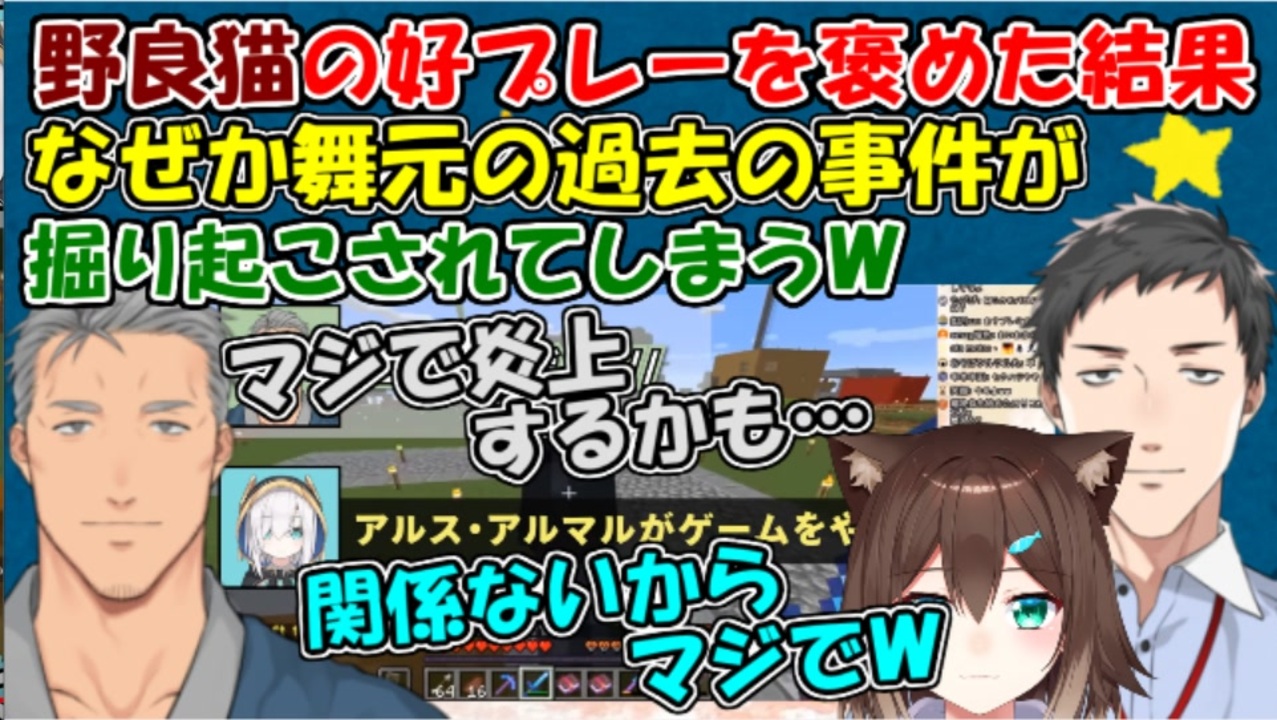 なぜか唐突に炎上する□舞元□<br><br>【元動画】<br>【スプラトゥーン2 #にじスプラ大会】おじさんとねこvsキル社会科見学 大会前最終プラベ編【にじさんじ/社築】<br><a href="https://www.youtube.com/watch?v=5D2r7Fzh2EY" target="_blank" rel="noopener nofollow">https://www.youtube.com/watch?v=5D2r7Fzh2EY</a><br><br>【ナンパ】二人きりだね…相手を惑わす魅惑の挨拶【マイクラ】【にじさんじ / 公式切り抜き / VTuber 】<br><a href="https://www.youtube.com/watch?v=klbpowPM460" target="_blank" rel="noopener nofollow">https://www.youtube.com/watch?v=klbpowPM460</a><br>※1:59あたりから当該部分になります<br><br>【youtube版】<br><a href="https://youtu.be/nfPrIS9o1s0" target="_blank" rel="noopener nofollow">https://youtu.be/nfPrIS9o1s0</a>