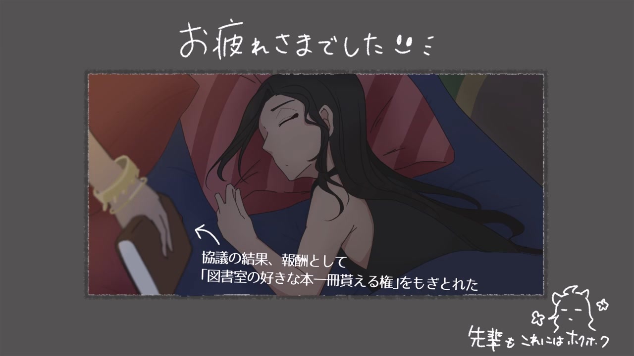我ながらタイトルがとっ散らかっているなと思う。<br>詳細は動画の始めにまとめたのでそちらを参照してくれ。<br><br>当日、配信へお越しいただいた各位へは心より感謝を。<br>興味を持ちつつ時間の都合が合わなかった方、あるいはもう一度見たいと思って下さった方、たまたまこの動画が目に付いた方。<br>どなたにとってもうちの学園に魅力を感じていただける一助になれば幸いだ。<br><br>【<a href="https://www.nicovideo.jp/mylist/68962019" target="_blank" rel="noopener">mylist/68962019</a>】<br><span style="font-size: 14px;">---------------------------------------------------------------</span><br><br>11/20-21に行われた、WEBオンリーにて展示していた動画です。<br><br>※捏造もりもり、好き勝手大暴れキャラ解釈<br>※配信済みのあらゆる話題に触れる謎時系列<br>※若干の拙作過去動画から繋がる身内トーク・センシティブな単語が頻発するゲーム・パズルゲームの解法バレなど含みます。ご注意下さい。<br><br>以上、ご許容頂ける方のみご視聴下さい。<br><br><a href="#" class="seekTime" data-seekTime="0:00" onclick="seekNicoPlayer('#0:00'); return false;">#0:00</a> ~ 企画説明<br><a href="#" class="seekTime" data-seekTime="5:10" onclick="seekNicoPlayer('#5:10'); return false;">#5:10</a> ~ バスケ部<br><a href="#" class="seekTime" data-seekTime="18:19" onclick="seekNicoPlayer('#18:19'); return false;">#18:19</a> ~ がけボ組<br><a href="#" class="seekTime" data-seekTime="32:02" onclick="seekNicoPlayer('#32:02'); return false;">#32:02</a> ~ 副寮長+α<br><a href="#" class="seekTime" data-seekTime="38:59" onclick="seekNicoPlayer('#38:59'); return false;">#38:59</a> ~ ジャミル個人<br><a href="https://youtu.be/GWmQl9aXINI" target="_blank" rel="noopener nofollow">https://youtu.be/GWmQl9aXINI</a> 夢の跡地(※捏造成分特に多め、注意)<br><a href="#" class="seekTime" data-seekTime="50:21" onclick="seekNicoPlayer('#50:21'); return false;">#50:21</a> ~ スカラビア<br><a href="#" class="seekTime" data-seekTime="64:14" onclick="seekNicoPlayer('#64:14'); return false;">#64:14</a> ~ 古代呪文語組<br><br><span style="font-size: 10px;">イベントめちゃくちゃたのしかったです、ありがとうございました!<br>またどこかでお会いしましょう□</span>