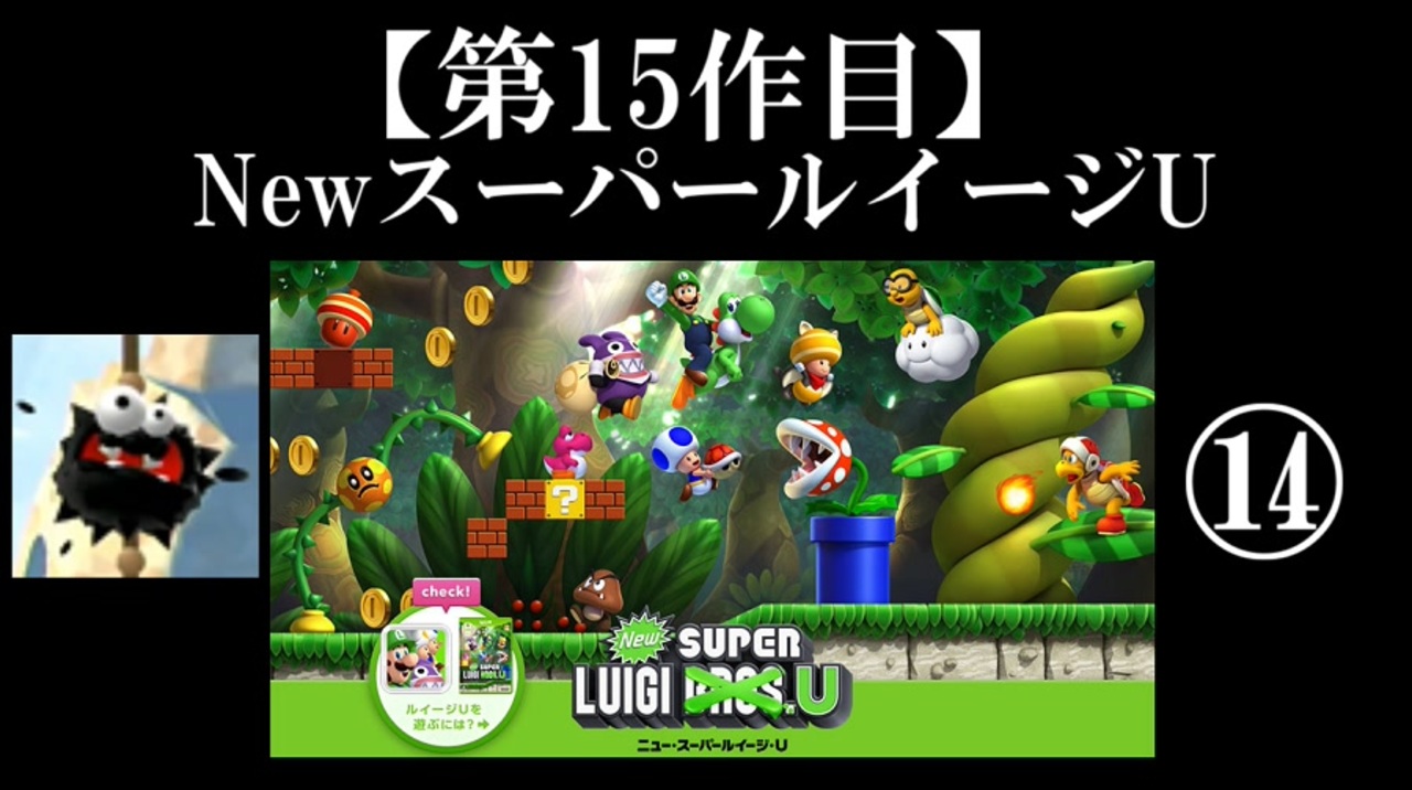 ずんだもんってデジモンのキャラだと思ってた<br> VOICEVOX:ずんだもん<br><br>【今回のいいね】 ゲイージのうんちの色<br><br>【今回の縛り】 特になし ※これまでのマラオゲームツアーと違い、完全初見です。動画などで観た事もありません。<br><br>6年半ぶりに元相方、みはさんとの実況動画をニコニコチャンネル限定で公開中!過去実況を毎週水曜日に投稿していきます。<br>是非ご視聴ください→<a href="https://www.nicovideo.jp/watch/1550670123" class="watch">watch/1550670123</a><br>ニコニコの有料チャンネル:<a href="https://ch.nicovideo.jp/ultimatenonke" target="_blank" rel="noopener">ch.nicovideo.jp/ultimatenonke</a> <br><br>Youtubeでも早期投稿中!:<a href="https://www.youtube.com/channel/UC9HK-1P7Kk91kT6caI-mSmA" target="_blank" rel="noopener nofollow">https://www.youtube.com/channel/UC9HK-1P7Kk91kT6caI-mSmA</a> <br><br>twitter→<a href="https://twitter.com/ultimatenonke" target="_blank" rel="noopener nofollow">https://twitter.com/ultimatenonke</a><br><br>ルイージU part13→<a href="https://www.nicovideo.jp/watch/sm39656511" class="watch">sm39656511</a> part15→<a href="https://www.nicovideo.jp/watch/sm39687921" class="watch">sm39687921</a>(毎週月、木曜日更新予定) <a href="https://www.nicovideo.jp/mylist/71948594" target="_blank" rel="noopener">mylist/71948594</a><br><br>過去の投稿動画一覧①→<a href="https://www.nicovideo.jp/mylist/28353385" target="_blank" rel="noopener">mylist/28353385</a> ②→<a href="https://www.nicovideo.jp/mylist/28347387" target="_blank" rel="noopener">mylist/28347387</a> <br>メール:ultimatenonke@yahoo.co.jp <br>生放送用コミュニティ:co461109<br>