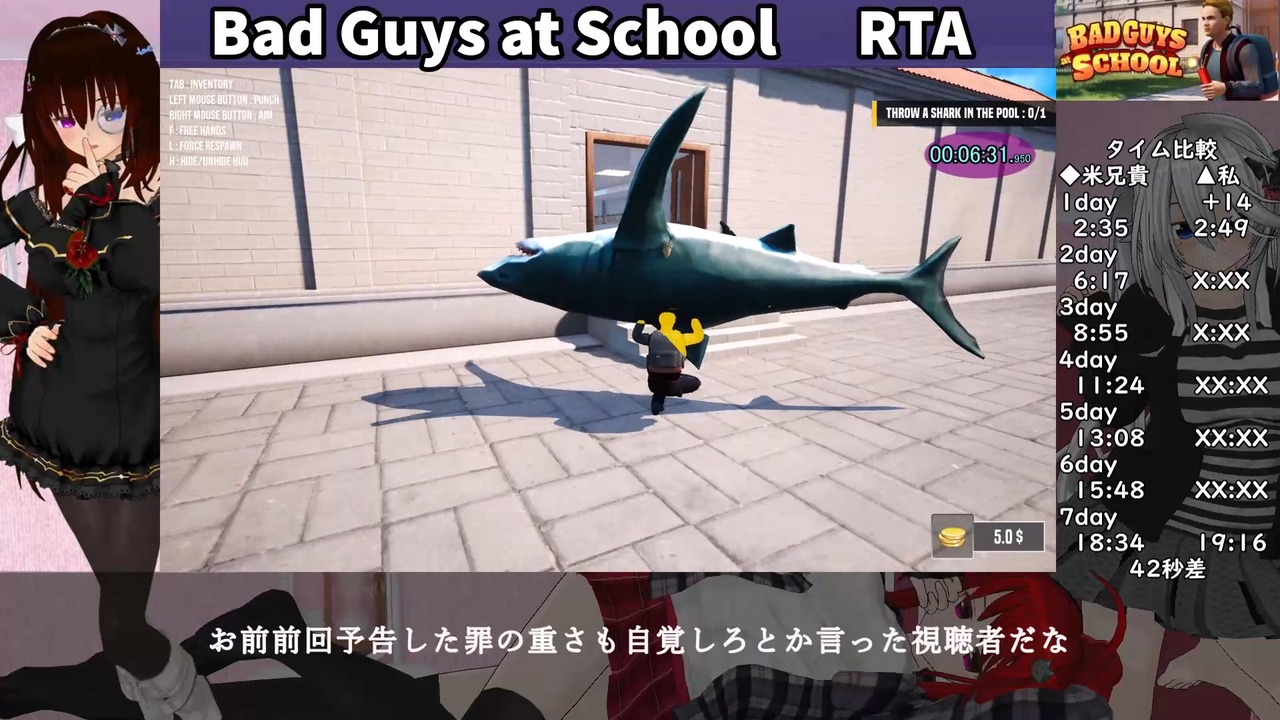 世界2位日本1位 再再再再再再再再再走です <br><br><span style="font-size: 24px;">デバイス制限されました </span><br><br><strong><u>レギュレーション(</u></strong><strong>All Missions</strong><strong><u>)<br>1日目開始時(左上ヘルプ項目が出た瞬間)~7日目5つ目の弓矢が当たった瞬間<br>(Speedrun.com基準)</u></strong><br><br>前回のバッドガイズ→<a href="https://www.nicovideo.jp/watch/sm39072508" class="watch">sm39072508</a><br>前回のRTA→<a href="https://www.nicovideo.jp/watch/sm39612903" class="watch">sm39612903</a><br><br>ツイッチ兄貴(現3位記録)→<a href="https://www.nicovideo.jp/watch/sm38419438" class="watch">sm38419438</a><br>閉廷兄貴のバッドガイズ1走目→<a href="https://www.nicovideo.jp/watch/sm39255064" class="watch">sm39255064</a><br><br>今後走る人<br>アサリ→<a href="https://www.nicovideo.jp/watch/sm39601274" class="watch">sm39601274</a><br>アルファ→<a href="https://www.nicovideo.jp/watch/sm39551379" class="watch">sm39551379</a><br><br>自主的にバッドガイズ買った良い子<br>モニカ兄貴→<a href="https://www.nicovideo.jp/watch/sm39657190" class="watch">sm39657190</a><br><br>大天使って呼んでくれてる人<br>アマツ兄貴→<a href="https://www.nicovideo.jp/watch/sm39627879" class="watch">sm39627879</a><br><br>無編集版(You Tube)→<a href="https://youtu.be/IG4krKKvCnM" target="_blank" rel="noopener nofollow">https://youtu.be/IG4krKKvCnM</a><br><br>全RTAマイリス⇒<a href="https://www.nicovideo.jp/mylist/69428960" target="_blank" rel="noopener">mylist/69428960</a><br>バッドガイズ専用マイリス→<a href="https://www.nicovideo.jp/mylist/70534608" target="_blank" rel="noopener">mylist/70534608</a><br>
