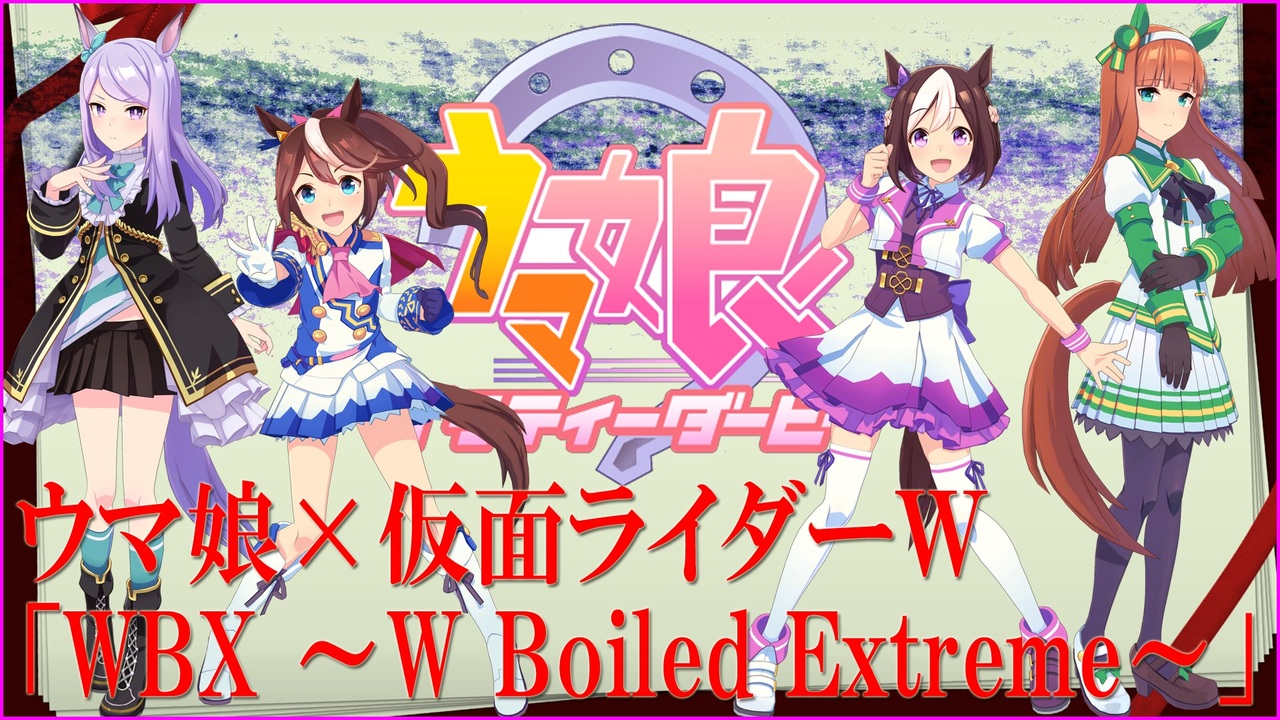 <span style="color: #ff0000; font-size: 18px;"><strong>「W-B-X 2人のBody&Soul ひとつに」<br>「W-B-X 最高のパートナー 出逢う時 奇跡おこる Wを捜せ!」</strong></span><br><u>Youtube>垢BAN!</u><br><br>競走馬好きだったオッサンが作った「ウマ娘MAD動画」第26弾。<br>【ウマ娘MAD】ウマ娘 × 仮面ライダーカブト「NEXT LEVEL」><span style="font-size: 16px;"><a href="https://www.nicovideo.jp/watch/sm38647465" class="watch">sm38647465</a></span> に続く<br>仮面ライダーシリーズの第2弾です。<br><br>「スペシャルウィーク×サイレンススズカ」「メジロパーマー×ダイタクヘリオス」<br>「ライスシャワー×ミホノブルボン」「トウカイテイオー×メジロマックイーン」<br>ウマ娘界4つのWを、あまり派手にせずシンプルにまとめました。<br>作成中に改めて思いましたが…仮面ライダーシリーズは良曲揃いですね!<br><br>例の如く歌詞を入れてありますので、カラオケ感覚でどうぞ。<br>見て下さった方に、少しでも楽しんで頂ければ幸いです(´ω`*)<br><br>==========<br><strong>【追伸①】</strong><span style="color: #ff00ff;"><strong><u>「マイリスト登録」「いいね」して下さった方、凄く嬉しいです!</u></strong></span><br><span style="color: #ff00ff;">[F980409さん][タカヒロさん][モフモフスキーさん][てりやきてっちゃんさん][紺狐。さん][マーモさん][ボイスさん][オー121さん][赤人さん][雷月さん][アーキテックジーナスさん][かねさん][ohakoさん][ぜろさん][tosutosuさん][mazinさん][たかはしぃさん][たかしさん][ハリネズミさん] 広告ありがとう御座います!</span><br><span style="color: #ff00ff; font-size: 18px;"><strong><u>[龍真さん][ま~さん] 超弩級広告ありがとう御座います!</u></strong></span><br><strong>【追伸②】[2525→5000→10000→15000再生されました!] (*^▽^*)やった!<br>【追伸③】[マイリスト数が50→100・いいね数が50→100→150→200を超えました!] 凄く久々で嬉しいです!</strong>