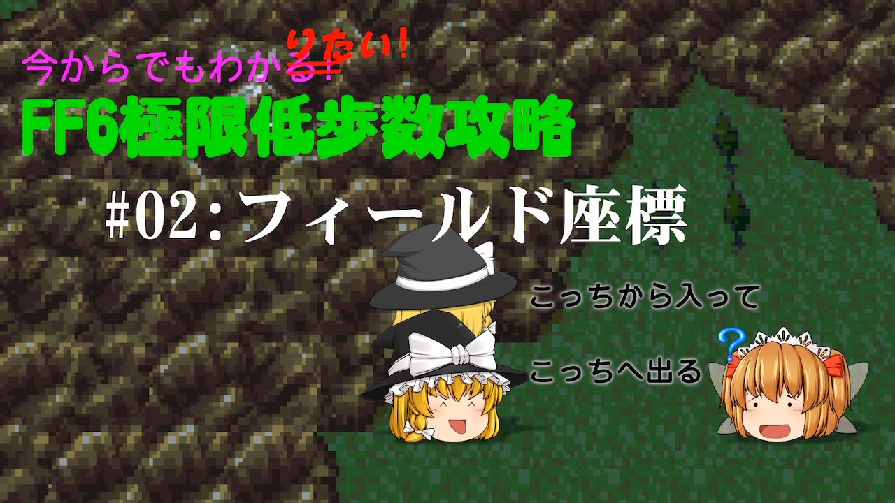 エディさんのFF6極限低歩数攻略シリーズ(<a href="https://www.nicovideo.jp/series/237650" target="_blank" rel="noopener">series/237650</a>)を解説したいと願う動画、第二弾は視聴者を「は?」の渦に陥れた原因、「フィールド座標」を取り上げます。<br><br><a href="#" class="seekTime" data-seekTime="0:00" onclick="seekNicoPlayer('#0:00'); return false;">#0:00</a> 前回からの変更点と懸賞問題<br><a href="#" class="seekTime" data-seekTime="2:33" onclick="seekNicoPlayer('#2:33'); return false;">#2:33</a> 導入<br><a href="#" class="seekTime" data-seekTime="3:30" onclick="seekNicoPlayer('#3:30'); return false;">#3:30</a> 前回の復習<br><a href="#" class="seekTime" data-seekTime="5:48" onclick="seekNicoPlayer('#5:48'); return false;">#5:48</a> フィールド座標とは何か<br><a href="#" class="seekTime" data-seekTime="8:51" onclick="seekNicoPlayer('#8:51'); return false;">#8:51</a> パーティ分割持ち出しするとどうなるか(実験1)<br><a href="#" class="seekTime" data-seekTime="13:48" onclick="seekNicoPlayer('#13:48'); return false;">#13:48</a> 実験1まとめと予想<br><a href="#" class="seekTime" data-seekTime="16:33" onclick="seekNicoPlayer('#16:33'); return false;">#16:33</a> 実際のメモリを見る(実験2)<br><a href="#" class="seekTime" data-seekTime="18:41" onclick="seekNicoPlayer('#18:41'); return false;">#18:41</a> 実験2まとめ、テントを使うと1マスずれるのはなぜか<br><a href="#" class="seekTime" data-seekTime="23:11" onclick="seekNicoPlayer('#23:11'); return false;">#23:11</a> 例外と補足説明<br><a href="#" class="seekTime" data-seekTime="25:04" onclick="seekNicoPlayer('#25:04'); return false;">#25:04</a> コメント返信<br><br>←Part1:全滅の罠(<a href="https://www.nicovideo.jp/watch/sm39285762" class="watch">sm39285762</a>)<br>→番外編: 全滅なし低歩数チャート解説(<a href="https://www.nicovideo.jp/watch/sm39968735" class="watch">sm39968735</a>)<br>→Part3:エンカウント乱数(4月中旬公開予定)<br><br><br>うp主の「FF6極限低歩数攻略 受講ノート」<br><a href="http://reviewers.s602.xrea.com/text/edy.html" target="_blank" rel="noopener nofollow">http://reviewers.s602.xrea.com/text/edy.html</a>