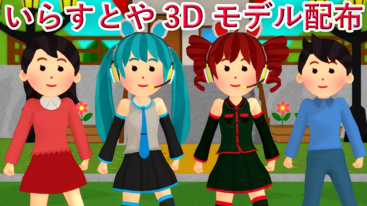 *いらすとや3Dモデルはいらすとや(公式)さんの許可を得て制作配布しています<br>*非商用です<br><br>◇いらすとや(公式)さんの禁止事項<br>・攻撃的、差別的、性的、政治的な表現など、イラストの印象を損ねるような利用<br>・公式が作成したものと誤解されるような表現<br><br>いらすとやのお姉さん <a href="https://bowlroll.net/file/266901" target="_blank" rel="noopener nofollow">https://bowlroll.net/file/266901</a><br>いらすとやのお兄さん <a href="https://bowlroll.net/file/266902" target="_blank" rel="noopener nofollow">https://bowlroll.net/file/266902</a><br>いらすとや風初音ミク <a href="https://bowlroll.net/file/266903" target="_blank" rel="noopener nofollow">https://bowlroll.net/file/266903</a><br>いらすとや風重音テト <a href="https://bowlroll.net/file/266904" target="_blank" rel="noopener nofollow">https://bowlroll.net/file/266904</a><br>いらすとやモデル用アイテム <a href="https://bowlroll.net/file/266905" target="_blank" rel="noopener nofollow">https://bowlroll.net/file/266905</a><br>いらすとやステージ <a href="https://bowlroll.net/file/266906" target="_blank" rel="noopener nofollow">https://bowlroll.net/file/266906</a><br><br>☆この3DモデルはMikuMikuDance用です<br>・人型モデルにはモーションを自動調整する調整ボーンを入れています<br>MMD以外のソフトは調整ボーンに対応していないので、他のソフトで使用すると不具合を起こすことがあります。その場合は「調整ボーン無し」モデルを使ってください<br><br>例 「いらすとやのお姉さん」←キャラ名だけのモデル、調整ボーンあり、MMD専用<br> 「いらすとやのお姉さん調整ボーン無し」←名前の後に「調整ボーン無し」がついてる<br><br>・「調整ボーン無し」モデルは基本ボーンと準標準ボーンだけのモデルです。<br>デフォルメ体型なのでモーションの調整が必要になることがあります<br><br>・人型モデルには目ボーンがありません、代わりに視線表現のモーフがあります <br>・目のモーフは組み合わせて使わないでください(同じパーツを使いまわしているので)<br><br>・川や噴水の水を流すにはステージのフォルダ内にあるUVモーションを適用させるか<br>エフェクトを使用してください<br> UV Glide(テンパカ様) <a href="https://www.nicovideo.jp/watch/sm23782522" target="_blank" rel="noopener nofollow">https://www.nicovideo.jp/watch/sm23782522</a> <a href="http://bowlroll.net/up/dl40599" target="_blank" rel="noopener nofollow">http://bowlroll.net/up/dl40599</a><br>・光るモーフは、AutoLuminous(そぼろ様)で光ります <br>そぼろエフェクトセット_再配布 <a href="https://bowlroll.net/file/236274" target="_blank" rel="noopener nofollow">https://bowlroll.net/file/236274</a><br>(そぼろさんのMMEは配布停止中、別の人がそぼろMMEセットをBowlrollに代理投稿)<br><br>・モデルに使用しているテクスチャは全て投稿者がいらすとやさんの絵に似せて描いた物です<br>
