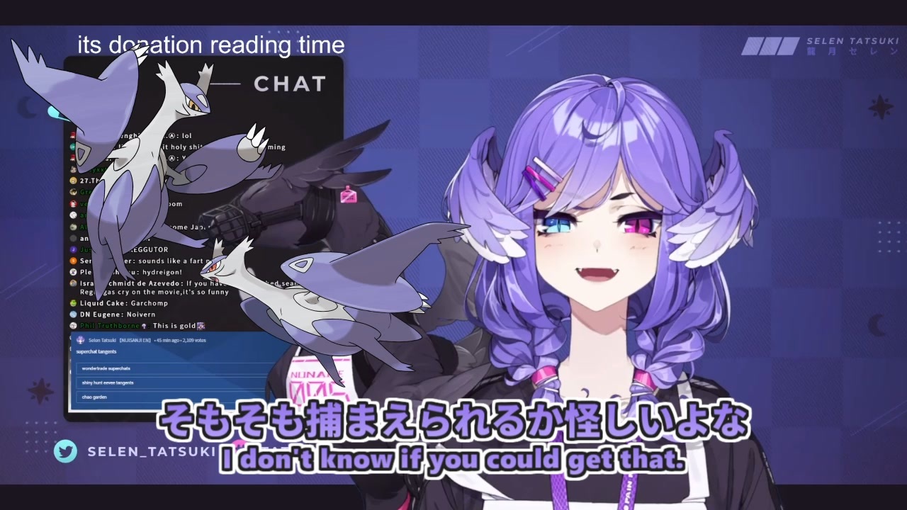 ◆元配信:<br> <a href="https://www.youtube.com/watch?v=azVVmDQtp_M" target="_blank" rel="noopener nofollow">https://www.youtube.com/watch?v=azVVmDQtp_M</a><br> 8:09:40 - 8:18:15<br><br>◆チャンネル<br> セレン龍月 / Selen Tatsuki<br> <a href="https://www.youtube.com/channel/UCV1xUwfM2v2oBtT3JNvic3w" target="_blank" rel="noopener nofollow">https://www.youtube.com/channel/UCV1xUwfM2v2oBtT3JNvic3w</a><br><br>◆英語字幕QC: Chimatta<br> 日本語字幕QC: サイコ<br> ありがとうございました!<br><br>◆レジ系の動画の本編<br> YouTube: <a href="https://www.youtube.com/watch?v=pSMQYDYBALY" target="_blank" rel="noopener nofollow">https://www.youtube.com/watch?v=pSMQYDYBALY</a><br> ニコニコ: <a href="https://www.nicovideo.jp/watch/sm14925403" class="watch">sm14925403</a><br><br>◆訂正(ゴメンネ)<br> 2:03 "You know - you know <u>what</u> I also love of a Pokemon?"<br><br>ちなみに明日11/30はセレンの誕生日です