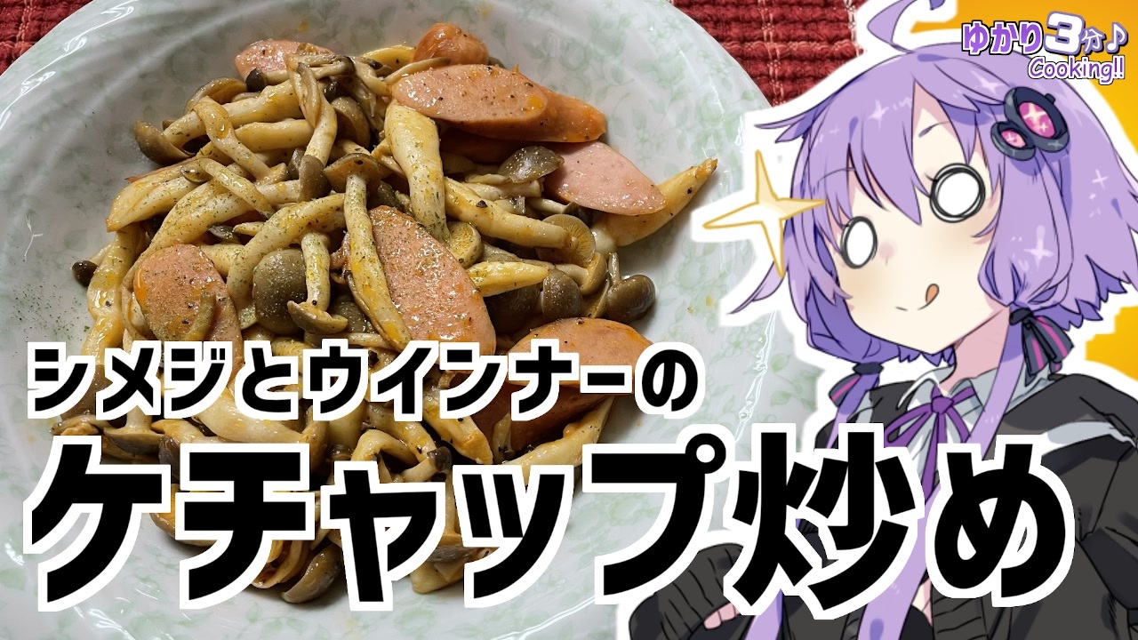 結月ゆかりを使用した料理動画です<br><br>シメジとウインナーのケチャップ炒め作りました!<br>こういうのが食べたい時もある!<br><br>隠匿されたガバについては『いいね!』ボタンを押して確認してくれよな!<br><br>今回使用した材料<br>シメジ:1パック ウインナー:3本<br>ケチャップ:小さじ2 塩コショウ:少々<br><br>前回の鶏もも肉のハニマス:<a href="https://www.nicovideo.jp/watch/sm39674544" class="watch">sm39674544</a><br>VOICEROID劇場 新訳猫町:<a href="https://www.nicovideo.jp/watch/sm39506126" class="watch">sm39506126</a><br>やっと完結したJK旅京都お花見編:<a href="https://www.nicovideo.jp/watch/sm39639517" class="watch">sm39639517</a><br><br>オススメのボイロ劇場<br>茜ちゃんと葵ちゃんの現代怪異占い:<a href="https://www.nicovideo.jp/watch/sm38263500" class="watch">sm38263500</a><br><br>ツイッター:<a href="https://twitter.com/mrt89244817" target="_blank" rel="noopener nofollow">https://twitter.com/mrt89244817</a>