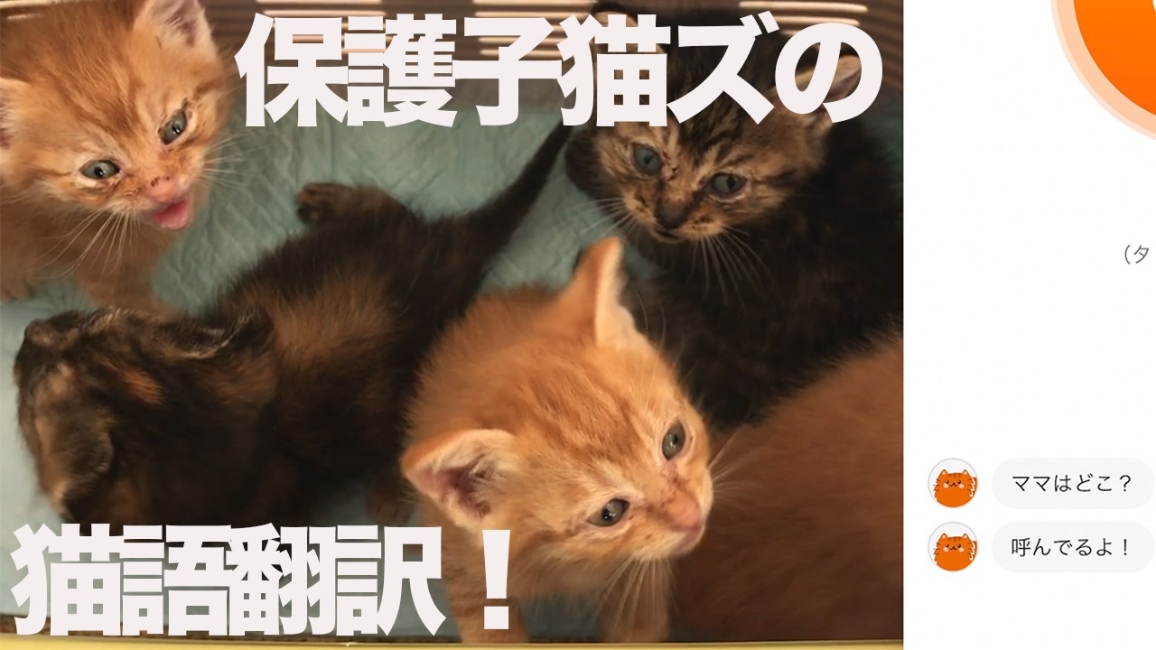 猫語翻訳アプリの「にゃんトーク」で我が家の猫たち検証シリーズ。<br>我が家の猫たちはみな成猫なのですが、今度は年端も行かない歴代の預かり子猫たちの鳴き声で検証をしてみました。推定生後5週程度、推定生後2日程度の子猫たちは果たしてその鳴き声を拾えるのか?<br>別画面で録画のため多少ラグはありますが、だいたい鳴き声と翻訳のタイミングは合ってると思います。<br><br>簡単な登場猫紹介 <a href="http://blog.livedoor.jp/nekokamasu/archives/56241249.html" target="_blank" rel="noopener nofollow">http://blog.livedoor.jp/nekokamasu/archives/56241249.html</a><br>よくあるご質問 <a href="http://blog.livedoor.jp/nekokamasu/archives/57126148.html" target="_blank" rel="noopener nofollow">http://blog.livedoor.jp/nekokamasu/archives/57126148.html</a><br>ブログ <a href="http://blog.livedoor.jp/nekokamasu/" target="_blank" rel="noopener nofollow">http://blog.livedoor.jp/nekokamasu/</a><br><br>
