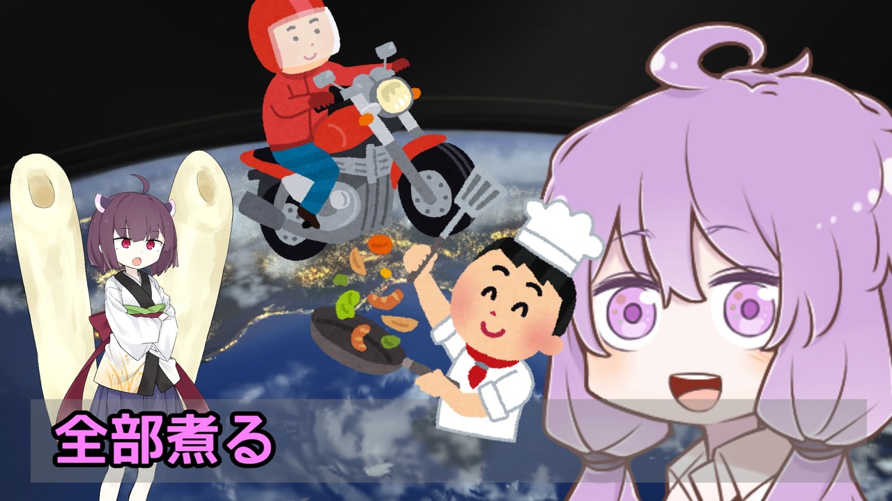 全部煮る<br><br><br>本動画は 12/1 - 12/5に開催される車載×キッチン コラボ企画『レシピルート10』の<br>(頼まれてもおらず、<span style="color: #ff0000;"><strong>参加者ですらない</strong></span>のに勝手に作った)<span style="font-size: 16px;"><strong><s>便乗</s></strong></span><span style="font-size: 16px;"><strong> </strong></span><span style="color: #ff0000; font-size: 18px;"><strong>応援動画</strong></span><span style="font-size: 18px;"><strong>です。</strong></span><br><s>こんな人為的で小賢しい茶番が霞むくらい</s><strong><s>見事にガバってくれる人がいて欲しい</s></strong><s>ですね。</s><br><br>作ってから運営に頼んだら命だけは助けてもらったので黙認動画です。<br><br>PV1:<a href="https://www.nicovideo.jp/watch/sm39622563" class="watch">sm39622563</a><br>PV2:<a href="https://www.nicovideo.jp/watch/sm39662915" class="watch">sm39662915</a><br>1分わからせ:<a href="https://www.nicovideo.jp/watch/sm39634230" class="watch">sm39634230</a><br>生放送告知:<a href="https://www.nicovideo.jp/watch/sm39682766" class="watch">sm39682766</a><br><br><strong>参加者マイリストbyりょの字さん:<a href="https://www.nicovideo.jp/mylist/72170502" target="_blank" rel="noopener">mylist/72170502</a></strong><br><br><span style="font-size: 10px;">※1:本企画に参加されていない投稿者の方の名前を出すことはご遠慮ください<br>※2:</span><span style="color: #ff0000; font-size: 10px;"><strong>イカロ(コアラ)は自分を参加者と思い込んでいる一般視聴者</strong></span><span style="font-size: 10px;"><strong>なので何卒よろしくお願いします</strong></span>