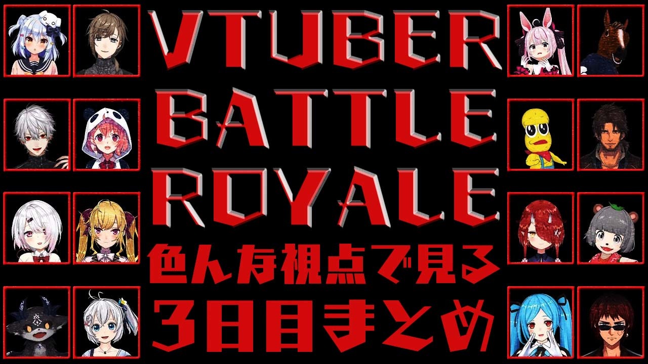 神視点含む15視点をある程度時系列順に繋いだバトロワ3日目のまとめです。<br>含まれていない場面もございますがご了承くださいませ。<br><br>1日目⇒<a href="https://www.nicovideo.jp/watch/sm39696507" class="watch">sm39696507</a><br>2日目⇒<a href="https://www.nicovideo.jp/watch/sm39699986" class="watch">sm39699986</a><br>4日目⇒<a href="https://www.nicovideo.jp/watch/sm39705086" class="watch">sm39705086</a><br><br>↓使用した動画は下記よりご覧ください↓<br><a href="https://www.youtube.com/playlist?list=PLSrkKhPMFNIUiuc08XvpMnI7yNFY9PUMF" target="_blank" rel="noopener nofollow">https://www.youtube.com/playlist?list=PLSrkKhPMFNIUiuc08XvpMnI7yNFY9PUMF</a><br><br>何かご意見あればこちらへ⇒<a href="https://twitter.com/aiaiaisssss" target="_blank" rel="noopener nofollow">https://twitter.com/aiaiaisssss</a>
