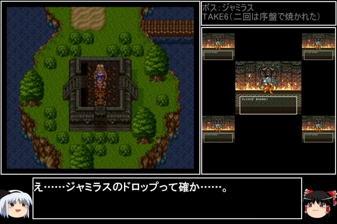 明日友人の結婚式に行く影響か、ジャミラス演説が披露宴にしか見えなかった……。<br>ジャミラスも、しれんその123も、次回戦うミラルゴも、戦い方さえ知っていれば楽になりますが真っ向勝負すると苦戦するボスだったり。転職してステータスが下がっていると尚更ですね。<br>(※最後のクイズはSFC版の名前でお願いします!)<br><br>前→<a href="https://www.nicovideo.jp/watch/sm39688532" class="watch">sm39688532</a> 次→<a href="https://www.nicovideo.jp/watch/sm39735022" class="watch">sm39735022</a><br><br>YouTube版→<a href="https://youtu.be/mXznbHY8g_s" target="_blank" rel="noopener nofollow">https://youtu.be/mXznbHY8g_s</a><br><br><br>※動画の大きさが変わる方は、お手数ですが設定→画質を自動から〇pに変えると解決します。<br>※一部機種は互換機を使用してのプレイとなります。<br><br>縛りルール(不明点はシリーズのQ&Aを参照)<br>①使った武器・防具・装飾品・道具・呪文・特技・一部特殊施設(メダル王・カジノ・移民の町)・職業(3,6,7)・仲間モンスター(4,5,6,8+7の職業)は次以降のシリーズで使用禁止。<br>(NPCキャラが使用した装備や呪文を含む。売却及び錬金素材としても使用扱い)<br><br>②裏技・バグ技の禁止。<br><br>③逃走禁止&戦闘終了時は全員生存。<br><br>④レベルを上げ過ぎない。<br>ダンジョンやボスは公式ガイドブックに記載されたレベル+3まで。<br>ラスボスは全ての呪文を習得するレベル+3程度までに収める。<br><br>⑤裏ボスも規定回数、規定ターン以内に倒す。<br>(6の裏ダンジョン突入時のみ、条件を満たすため①の職業を解禁)<br><br>(おまけ)<br>宝は可能なものに限り全回収。<br>5と6は同一モンスターの仲間不可。<br>回避可能なボスも全て倒す。<br><br><br>この動画で利用している株式会社スクウェア・エニックスを代表とする共同著作者が権利を所有する著作物及びスギヤマ工房有限会社が権利を所有する楽曲の転載・配布は禁止いたします。<br>(C) ARMOR PROJECT/BIRD STUDIO/SQUARE ENIX All Rights Reserved.<br>(C) SUGIYAMA KOBO (P) SUGIYAMA KOBO<br><br>AquesTalk2ライセンスID:AQTK2WINUSR23122185<br /><br><br>❤いいねを押していただけるとモチベーションと投稿速度が上がるので宜しくお願い致します!<br><br>作者ツイッター→ <a href="https://twitter.com/nig0117" target="_blank" rel="noopener nofollow">https://twitter.com/nig0117</a><br>PIXIV FANBOX→ <a href="https://sutanokeiji.fanbox.cc/" target="_blank" rel="noopener nofollow">https://sutanokeiji.fanbox.cc/</a><br><br>( 以前はWEB小説書いてました→ <a href="https://kakuyomu.jp/works/1177354054884910267" target="_blank" rel="noopener nofollow">https://kakuyomu.jp/works/1177354054884910267</a> )
