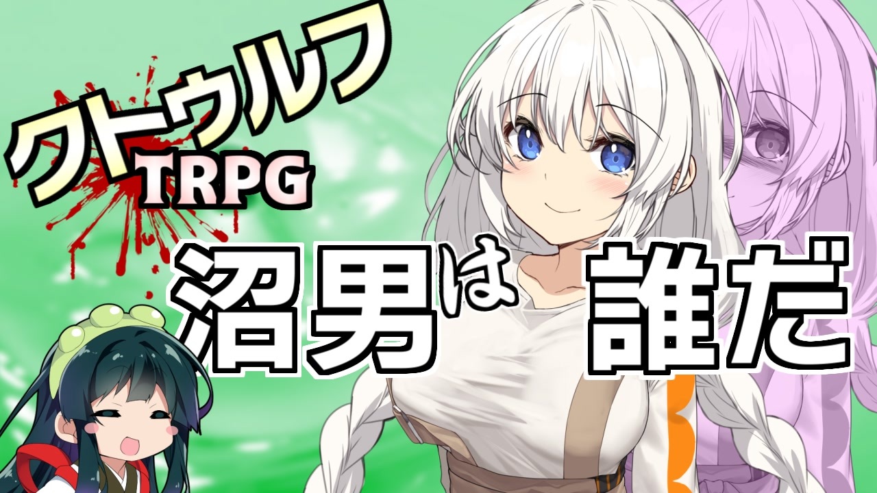 <span style="color: #ff0000;">いいね❤</span>を押すと、セッション参加者の裏話が見れます!<br><br><span style="font-size: 24px;"><strong>次:<a href="https://www.nicovideo.jp/watch/sm39738406" class="watch">sm39738406</a></strong></span><br><br>本動画はma34様作のシナリオ「沼男は誰だ?」を<br>加筆アレンジしたむつー様の台本を参考にしており、ネタバレがあります。<br>配布ページ→(<a href="https://booth.pm/ja/items/2600098)" target="_blank" rel="noopener nofollow">https://booth.pm/ja/items/2600098)</a><br><br>劇場集《<a href="https://www.nicovideo.jp/mylist/59100427" target="_blank" rel="noopener">mylist/59100427</a>》<br>ついった ⇒ <a href="https://twitter.com/amazoudotcom" target="_blank" rel="noopener nofollow">https://twitter.com/amazoudotcom</a><br><br><br><br>一部の簡単コメントが変化します。<br>「うぽつ」「!?」「ここすき」等<br>※スマホでは反映されません。<br><br><span style="font-size: 10px;">キーワード:VOICEROID ボイスロイド ソフトウェアトーク クトゥルフ神話TRPG スワンプマン<br><br>本作は、「 株式会社アークライト 」及び「株式会社KADOKAWA」が権利を有する『クトゥルフ神話TRPG』の二次創作物です。<br> <br> Call of Cthulhu is copyright ©1981, 2015, 2019 by Chaosium Inc. ;all rights reserved. Arranged by Arclight Inc.<br> Call of Cthulhu is a registered trademark of Chaosium Inc.<br> PUBLISHED BY KADOKAWA CORPORATION 「クトゥルフ神話TRPG」</span><br /><span style="color: #0000ff; font-size: 18px;"><strong>【最新の動画 2022/11/22】</strong></span><span style="color: #9900ff; font-size: 24px;"><strong><a href="https://www.nicovideo.jp/watch/sm41405105" class="watch">sm41405105</a></strong></span><br><span style="color: #ff9900; font-size: 18px;"><strong>東北イタコさんになれる声変換ソフト「Seiren Voice」で、有名コピペを読んでみました!</strong></span><br><br><br>【他の動画はこちら!】<br>ずんだもんが 手打ちのお蕎麦をつくるのだ!【<a href="https://www.nicovideo.jp/watch/sm39842112" class="watch">sm39842112</a>】<br>風来人コスの美少女 あかりちゃんのちょっとムフフなシレン5実況【<a href="https://www.nicovideo.jp/watch/sm37989171" class="watch">sm37989171</a>】<br>魔物娘なボイスロイドと、水奈瀬コウのローグライク実況 【<a href="https://www.nicovideo.jp/watch/sm37769092" class="watch">sm37769092</a>】<br>他のボイロ投稿者様と一緒に遊んだ記録 【<a href="https://www.nicovideo.jp/watch/sm38287059" class="watch">sm38287059</a>】<br>イタコ姉さまが おちんぎんを入れられちゃう動画【<a href="https://www.nicovideo.jp/watch/sm37280920" class="watch">sm37280920</a>】<br>きりたんのEXボイスに ひたすら煽られる動画【<a href="https://www.nicovideo.jp/watch/sm34382406" class="watch">sm34382406</a>】<br>ゆかりさんが サキュバス琴葉姉妹に負けちゃう動画【<a href="https://www.nicovideo.jp/watch/sm33404390" class="watch">sm33404390</a>】<br><br><span style="color: #ff0000;"><strong><u>クリエイターサポート制度実装!</u></strong></span><br>投稿者に<span style="color: #ff9900;"><strong><u>一杯のコーヒーのご支援</u></strong></span>、よろしくお願いします!<br><a href="https://creator-support.nicovideo.jp/registration/8387576" target="_blank" rel="noopener nofollow">https://creator-support.nicovideo.jp/registration/8387576</a><br>