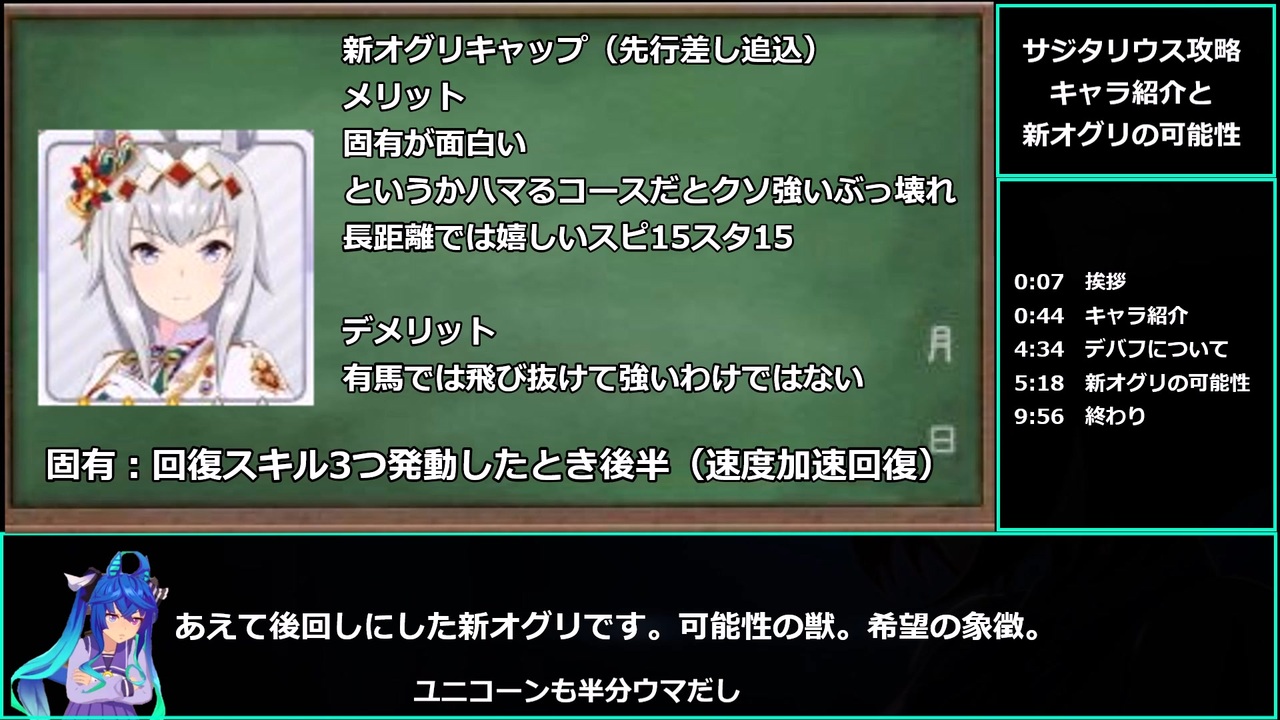 ユニコーンもウマ娘<br><br>対人戦基礎知識<br>初級編→<a href="https://www.nicovideo.jp/watch/sm39432258" class="watch">sm39432258</a><br>中級編→<a href="https://www.nicovideo.jp/watch/sm39432514" class="watch">sm39432514</a><br>スキル編→<a href="https://www.nicovideo.jp/watch/sm39433182" class="watch">sm39433182</a><br>スキルランキング編→<a href="https://www.nicovideo.jp/watch/sm39407156" class="watch">sm39407156</a><br>加速について→<a href="https://www.nicovideo.jp/watch/sm39583007" class="watch">sm39583007</a><br><br>ツイッターも始めたのでよろしくなす<br><a href="https://twitter.com/umamusumetama" target="_blank" rel="noopener nofollow">https://twitter.com/umamusumetama</a><br><br>↓にあるシリーズから過去動画みれるぞ。<br>もうマイリスの時代じゃないんだ。悔しいけど仕方ないんだ。<br>