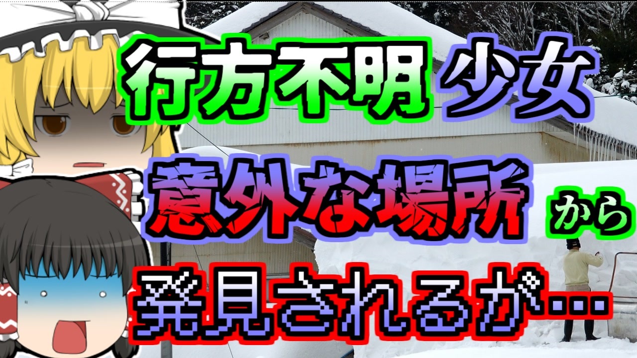 #ゆっくりするところ #雪 #事故<br>今回紹介するのは、リクエストがありました「雪下ろし児童行方不明事故」です。<br>日本でも有数の降雪量が多い米沢市では、各家庭での雪かきや、雪下ろしは習慣となっていました。<br>この日も、いつものように庭や屋根の雪を除雪していた、会社員の「Aさん」。<br>雪かきを終え、家でくつろいでいたAさんでしたが、突然お隣に住む小学生「Bちゃん」が行方不明になったいたことを知ります。<br>その後、AさんもBちゃんの捜索に協力しましたが、一向に見つかりません。<br>仕方なく、警察も翌日から本格的な捜査を行うとして、この日は捜索を一時中断。<br>翌日、また雪が降り積もっていたため、Aさんは先日と同じように、家の雪かきを始めましたが、そこで意外なものを発見します…<br><br>引用:出展:参考資料<br>Wikipedia<br>ishort.ink/rnxn<br>米沢市<br>ishort.ink/TWxP<br>国土交通省<br>ishort.ink/Q3Zq<br>YAHOO!ニュース<br>ishort.ink/eLsw<br>その他視聴者提供資料など。<br><br><br />※この動画は過去の事件を知り、現在でも同じことが発生する危険性を再認識、関与しないように促すための動画であり、視聴者を扇動、動揺を誘うためのコンテンツではありません。<br><br>ご要望にお応えして、メンバーシップの開設を行いました。<br>下記URLからも登録可能ですので、ご興味がある方は是非ご参加ください。<br><a href="https://www.youtube.com/channel/UCcT5a1J7XJW7CLYI2RKl4pw/join" target="_blank" rel="noopener nofollow">https://www.youtube.com/channel/UCcT5a1J7XJW7CLYI2RKl4pw/join</a><br><br><br>Twitter<br>→<a href="https://twitter.com/yukkurisurutoko" target="_blank" rel="noopener nofollow">https://twitter.com/yukkurisurutoko</a><br><br>取り急ぎ、簡易的にですがマイリストを作りました。<br>【ゆっくり解説】事故・事件関係紹介リスト <br><a href="https://www.nicovideo.jp/mylist/71034319" target="_blank" rel="noopener nofollow">https://www.nicovideo.jp/mylist/71034319</a><br>【ゆっくり解説】放射線系事故<br><a href="https://www.nicovideo.jp/mylist/71034368" target="_blank" rel="noopener nofollow">https://www.nicovideo.jp/mylist/71034368</a><br>【ゆっくり解説】鉄道系事故・事件関連<br><a href="https://www.nicovideo.jp/mylist/71034379" target="_blank" rel="noopener nofollow">https://www.nicovideo.jp/mylist/71034379</a>