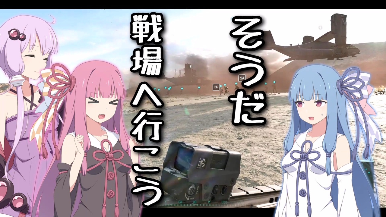 <色々言われてるけど戦場楽しいです><br><br><br>赤い方→ボケ担当、びびり、ふりーだむ<br>青い方→ツッコミ担当、時々口が悪くなる<br>紫のおねーさん→ボケ担当のはずだった<br><br><br> 次の→まだ<br><br>まいりす→<a href="https://www.nicovideo.jp/mylist/72277104" target="_blank" rel="noopener">mylist/72277104</a><br><br>使わせていただいてる立ち絵→ <a href="https://seiga.nicovideo.jp/seiga/im10636698" target="_blank" rel="noopener">im10636698</a> <a href="https://seiga.nicovideo.jp/seiga/im10742118" target="_blank" rel="noopener">im10742118</a><br><br>使わせていただいたニコニ・コモンズ以外の素材<br>→DOVA-SYNDROME shimtone様『明日へ走れ』<a href="https://www.youtube.com/watch?v=hg1Mron7vPk(BGM)" target="_blank" rel="noopener nofollow">https://www.youtube.com/watch?v=hg1Mron7vPk(BGM)</a><br>→On-Jin ~音人~(効果音) <a href="https://on-jin.com/" target="_blank" rel="noopener nofollow">https://on-jin.com/</a><br>→効果音ラボ(効果音) <a href="https://soundeffect-lab.info" target="_blank" rel="noopener nofollow">https://soundeffect-lab.info</a><br>→魔王魂(効果音)<a href="https://maou.audio" target="_blank" rel="noopener nofollow">https://maou.audio</a><br>