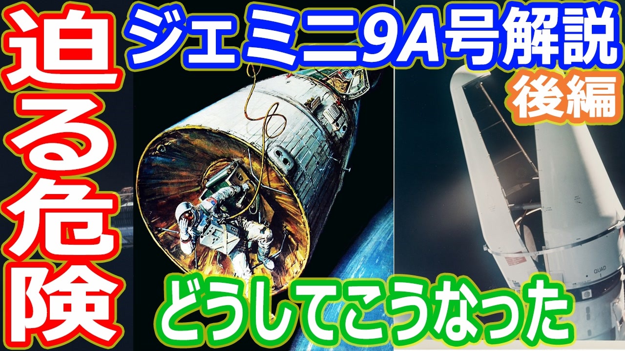 前編 <a href="https://www.nicovideo.jp/watch/sm39705640" class="watch">sm39705640</a><br>今回は、アメリカの有人宇宙計画であるジェミニ9A号の後編を解説します<br>悲しい事故でエリオットシーとチャールズバセットを失ったジェミニ9号は、バックアップクルーのトーマス・スタッフォードとユージン・サーナンが新たにプライムクルーとして搭乗することになり、宇宙空間でのランデブーとドッキング実証を行うはずが・・・<br>需要があれば、なぜ怒ったワニになったのか解説するアンコールをやります<br><br>【いちおし宇宙系】<br>・アマゾンリンク<br><a href="https://amzn.to/2S8xjpH" target="_blank" rel="noopener nofollow">https://amzn.to/2S8xjpH</a><br>・天文年鑑 2022年版<br><a href="https://amzn.to/3FQzCB7" target="_blank" rel="noopener nofollow">https://amzn.to/3FQzCB7</a><br>・天文手帳 2022年版<br><a href="https://amzn.to/30XZYlG" target="_blank" rel="noopener nofollow">https://amzn.to/30XZYlG</a><br>・天体観測手帳2022<br><a href="https://amzn.to/3DUHL6R" target="_blank" rel="noopener nofollow">https://amzn.to/3DUHL6R</a><br><br>公平性や中立性を考えてアフィリエイトリンクは控えていましたが、得た収益を次のレビュー書籍や機材代にするために始めました<br>よろしくお願いします<br><br>へえ~と思ったらチャンネル登録と高評価をお願います<br>ツイッターでは、たまに宇宙ネタをつぶやいています<br><br>◆チャンネル登録はこちら<br><a href="http://www.youtube.com/channel/UChOv-TZWg3X4MDjFUF8CfQg?sub_confirmation=1" target="_blank" rel="noopener nofollow">http://www.youtube.com/channel/UChOv-TZWg3X4MDjFUF8CfQg?sub_confirmation=1</a><br>◆サブチャンネル(スカイ三平の雑多推進研究所)<br><a href="http://www.youtube.com/channel/UCpQEOLtOpmXUwslvgi93yQw?sub_confirmation=1" target="_blank" rel="noopener nofollow">http://www.youtube.com/channel/UCpQEOLtOpmXUwslvgi93yQw?sub_confirmation=1</a><br>◆twitterはこちら<br><a href="https://twitter.com/skysanpei" target="_blank" rel="noopener nofollow">https://twitter.com/skysanpei</a>